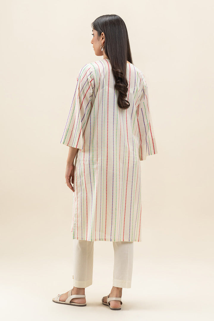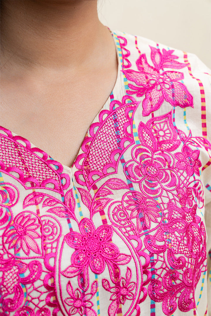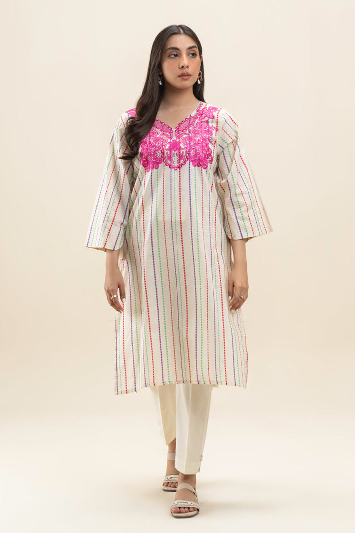 - Description: Printed Kurta With Embroidered Neckline.Boat Neck With Slit.Straight Hem.
