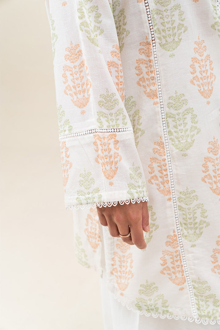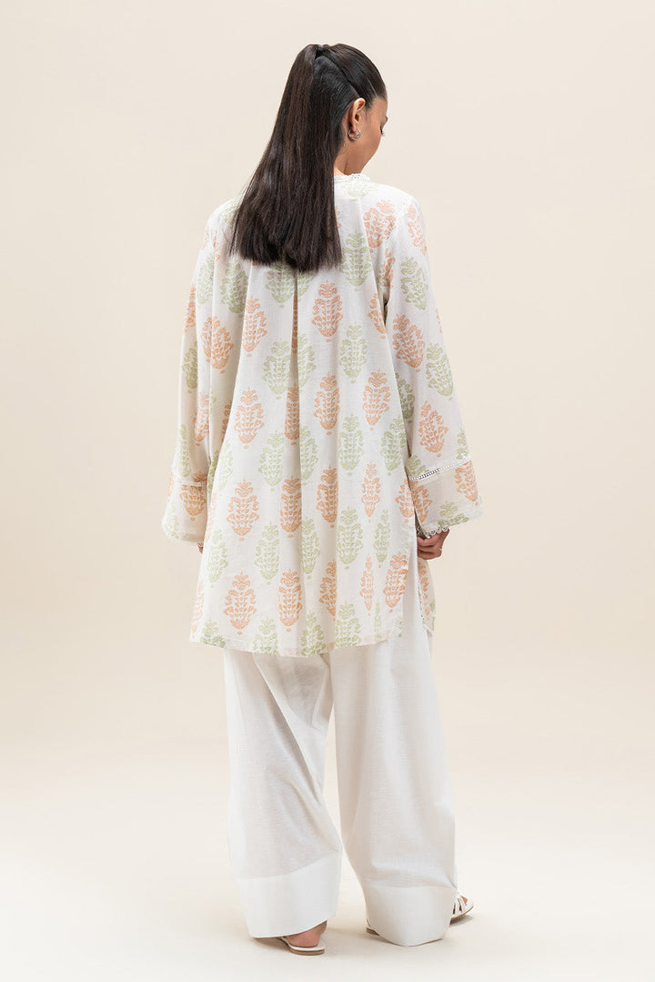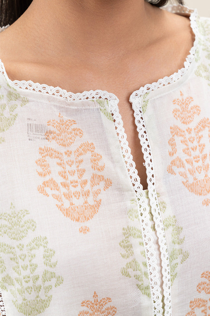 - Description: Basic Printed Shirt With Round Neckline And Placket With Laces Inserts.