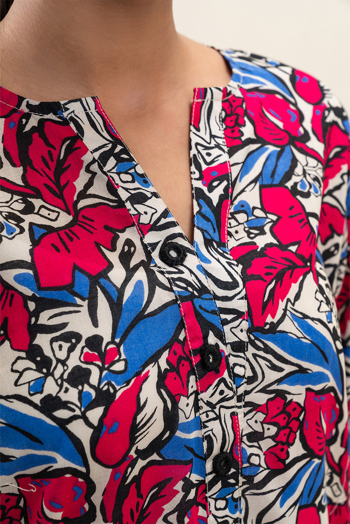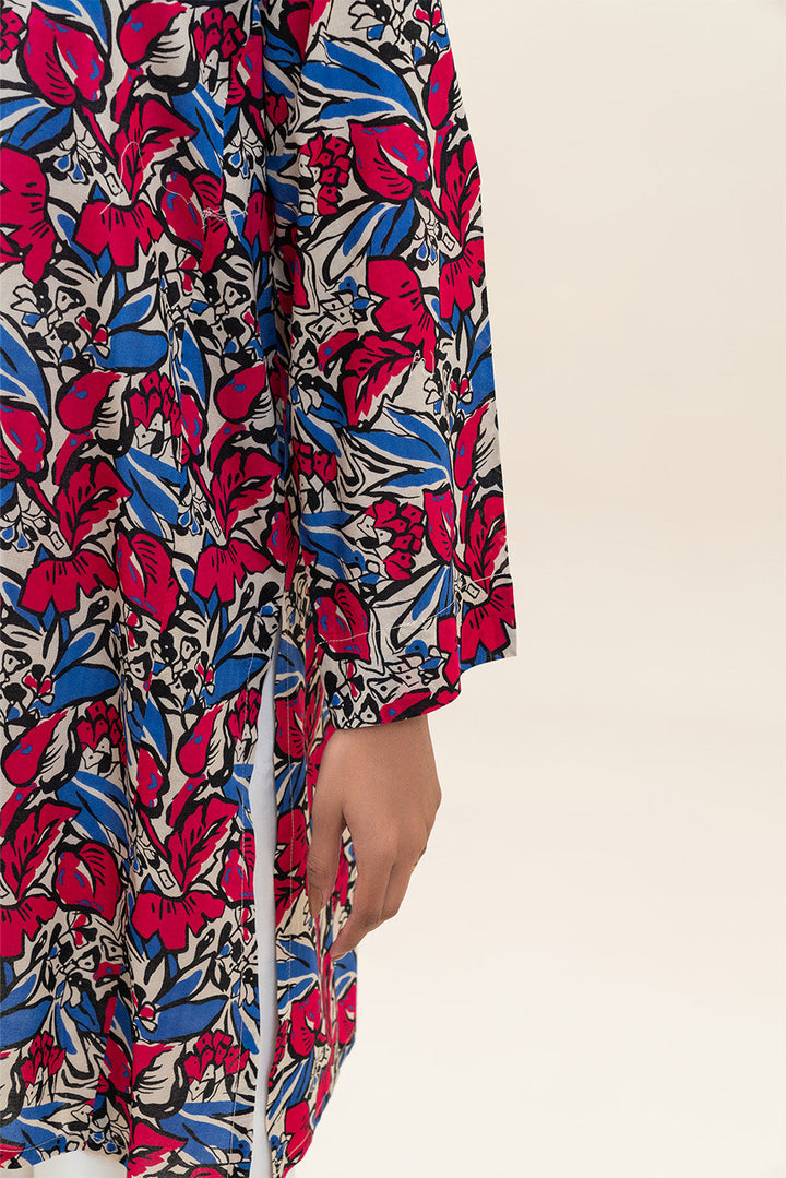 - Description: Digital Printed Mid Length Shirt With Mirror Detail On Neck..
