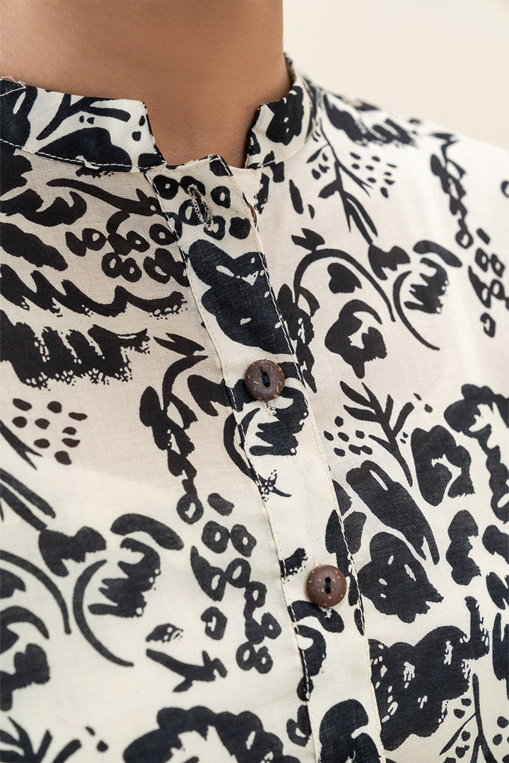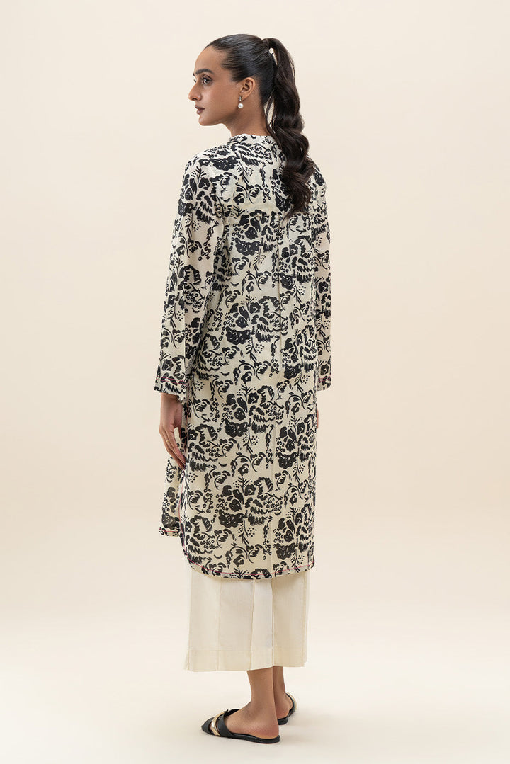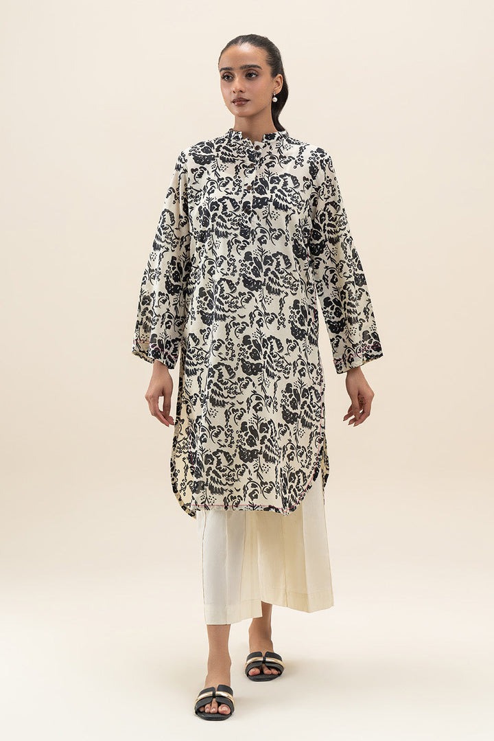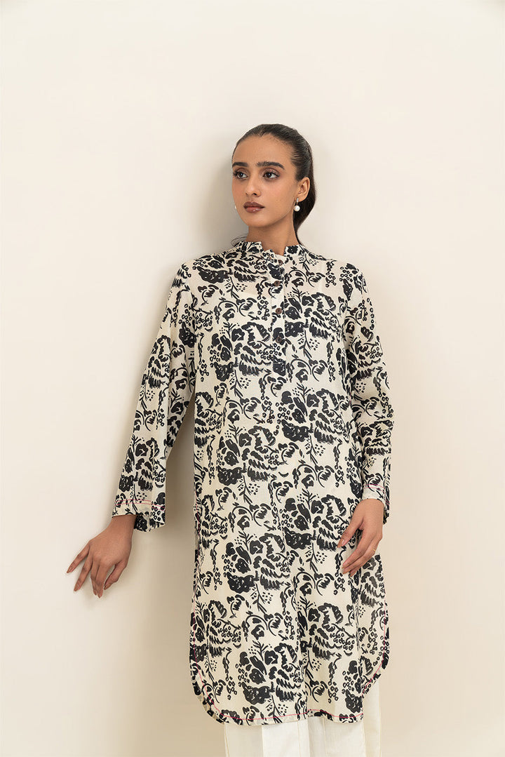- Description: Band Collar With Placket Detail . Long Tunic With Box Pleat Detail At Back