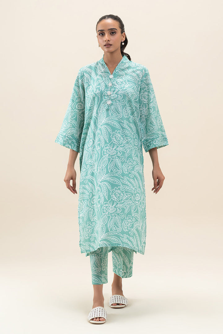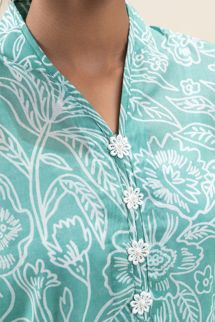 - Description: 2Pc Printed Shirt Paired With Band And Flowers On Placket Paired With Printed Straight Pants.