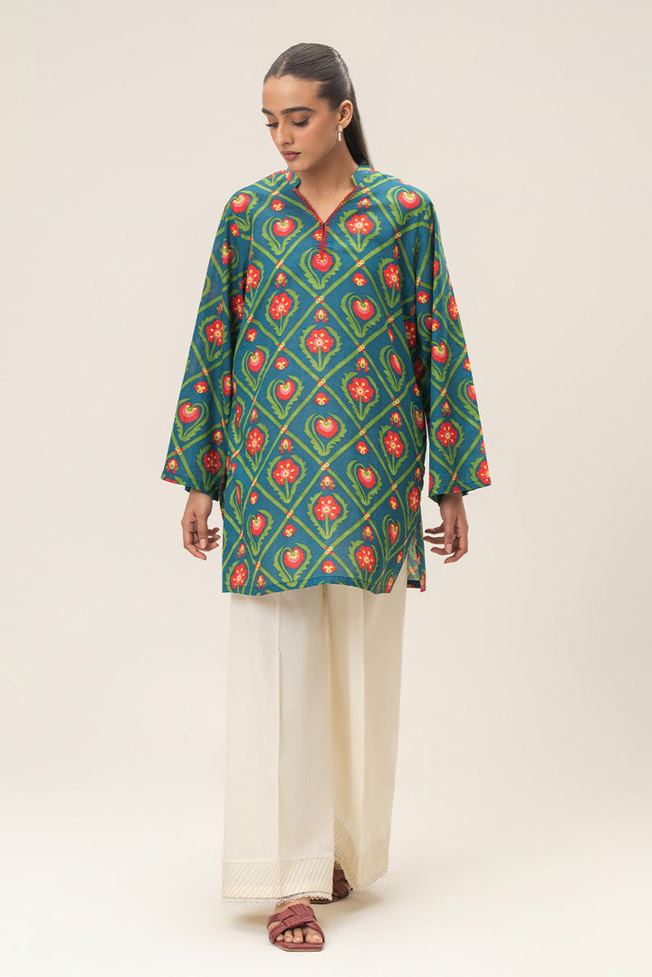 - Description: 1Pc Printed Shirt With Hand Stitch Detail On Neckline.