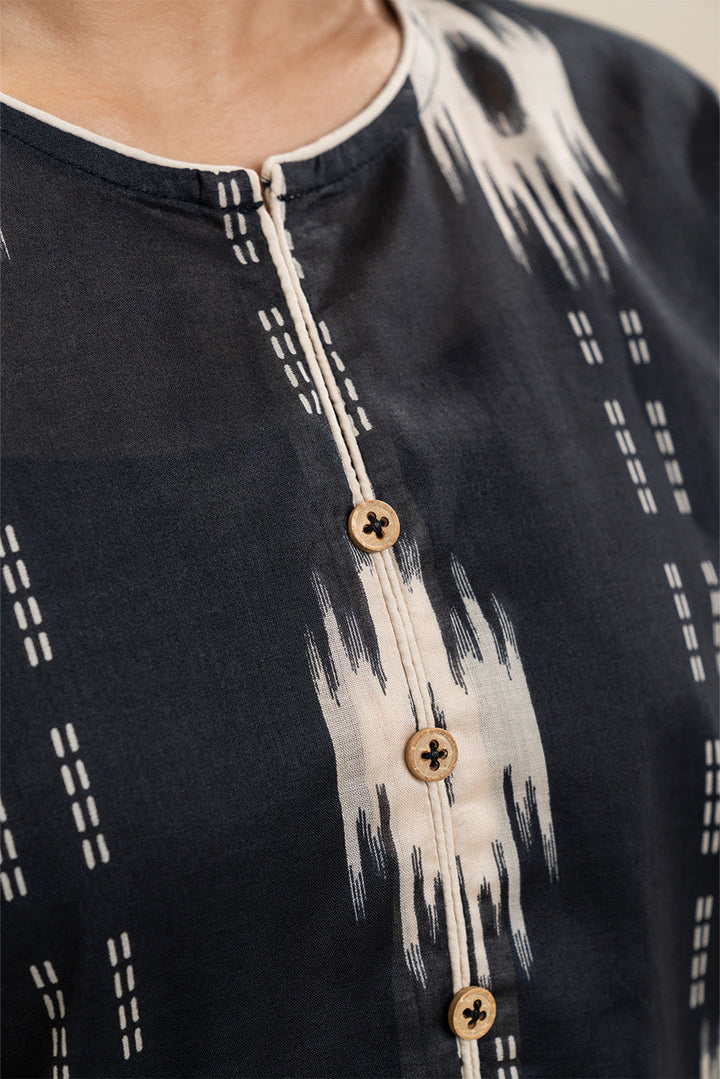- Description: 2Pc Printed Shirt With Contrasting Color Details On Neckline And Sleeves Paired With Culotte.