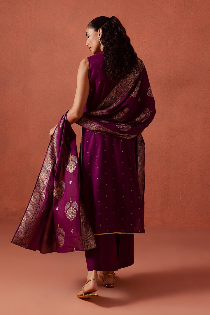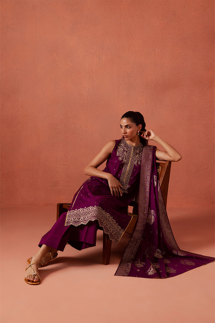 3 PIECE EMBROIDERED LUREX JACQUARAD SUIT-SOLSTICE MOON (UNSTITCHED)