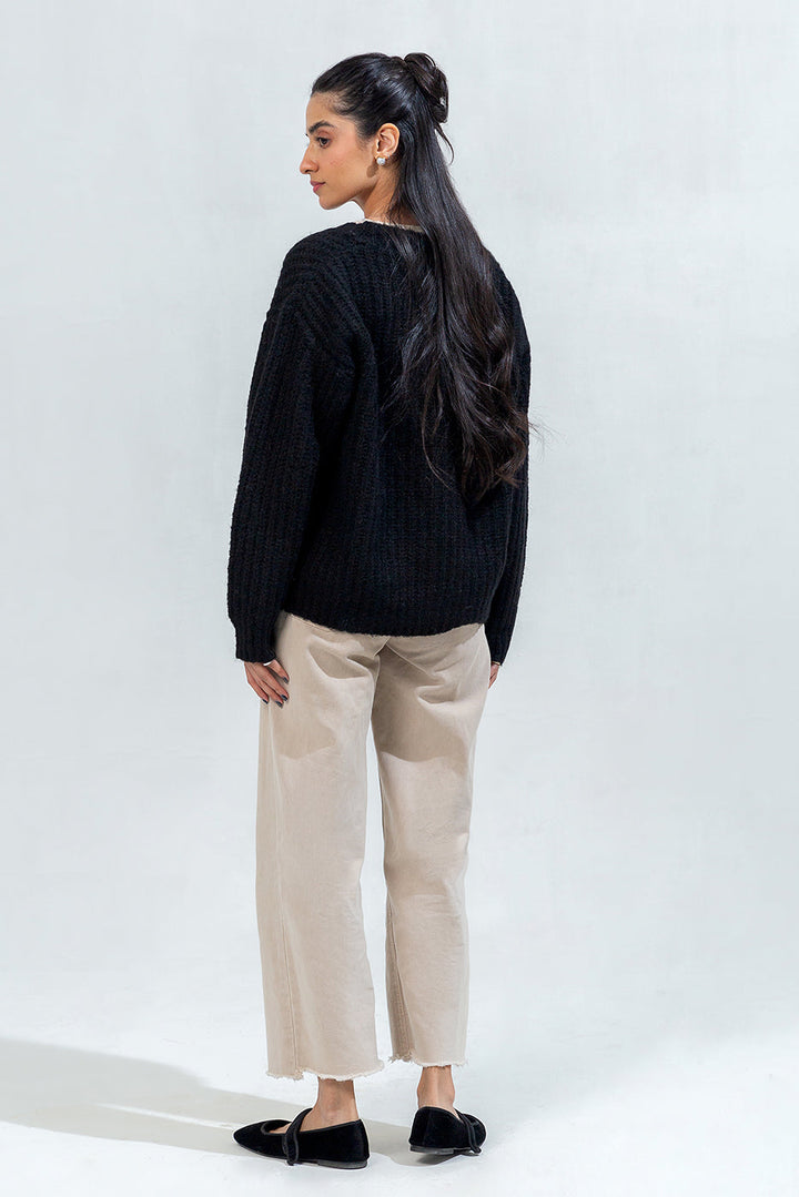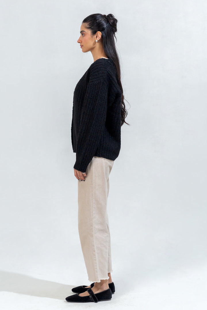 - Description: Loose Fit V Cardigan With Matte Button Though Opening, Drop Shoulders Along With Full Sleeves.