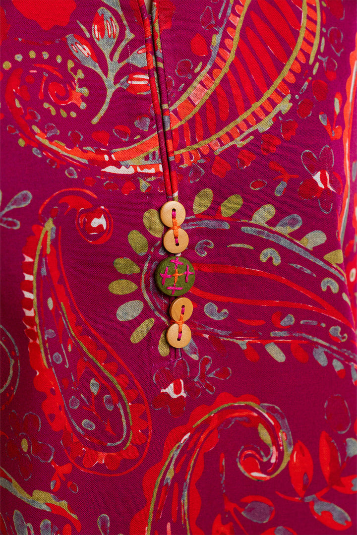 - Description: Digital Printed Long Length Shirt With Unique Accessories On Neck Paired With Straight Pants.