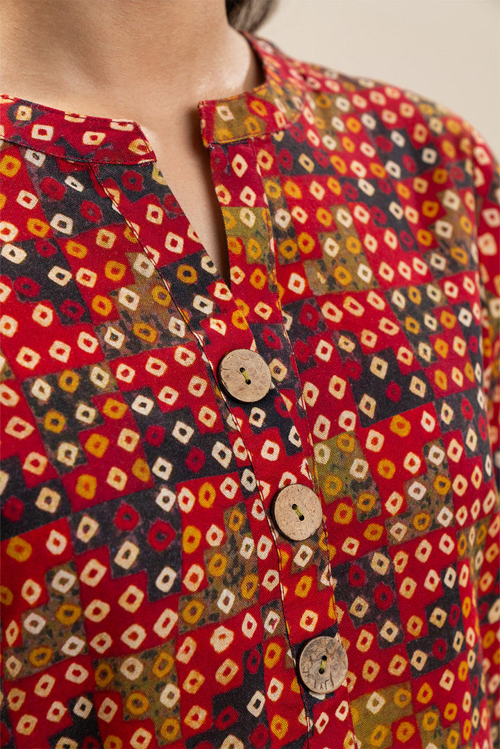 - Description: Digital Printed Long Length Shirt With Unique Accessories On Neck Paired With Straight Pants.