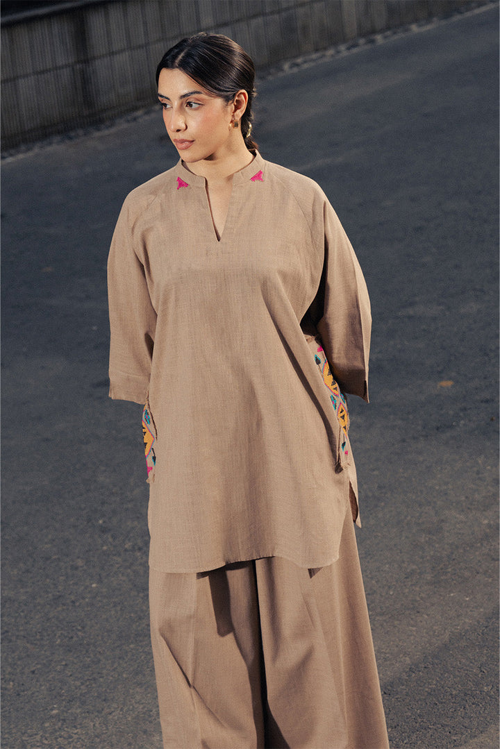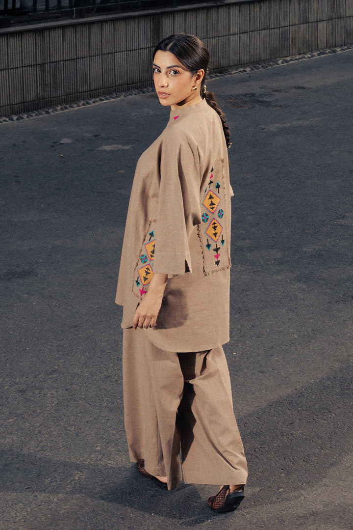 2 PIECE EMBROIDERED TWO WAY SLUB SUIT (PRET)