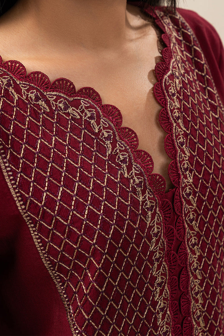 3 PIECE EMBROIDERED SLUB KHADDAR SUIT-JAPANESE MAPLE (UNSTITCHED)