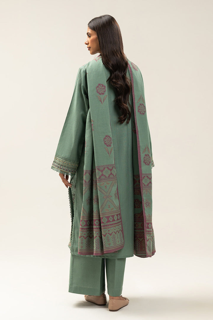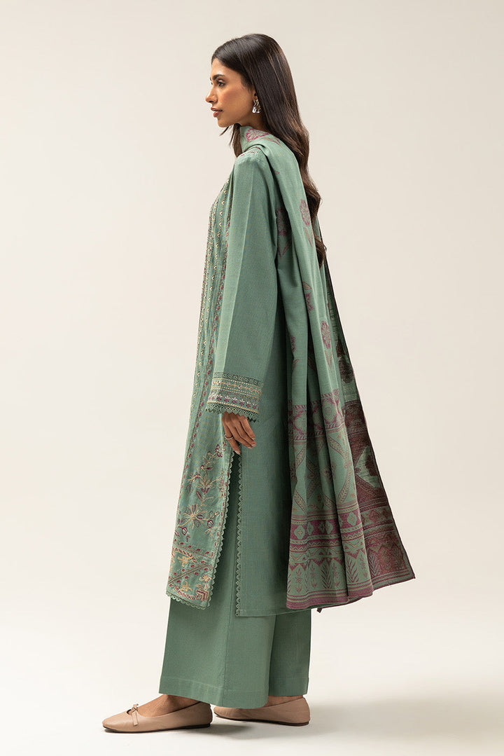 3 PIECE EMBROIDERED SLUB KHADDAR SUIT-SAGE AMBUSH (UNSTITCHED)