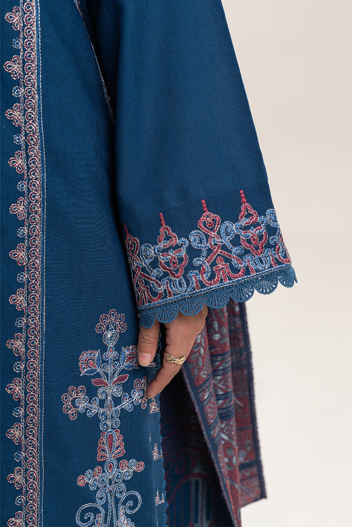 3 PIECE EMBROIDERED SLUB KHADDAR SUIT-COBALT BLISS (UNSTITCHED)