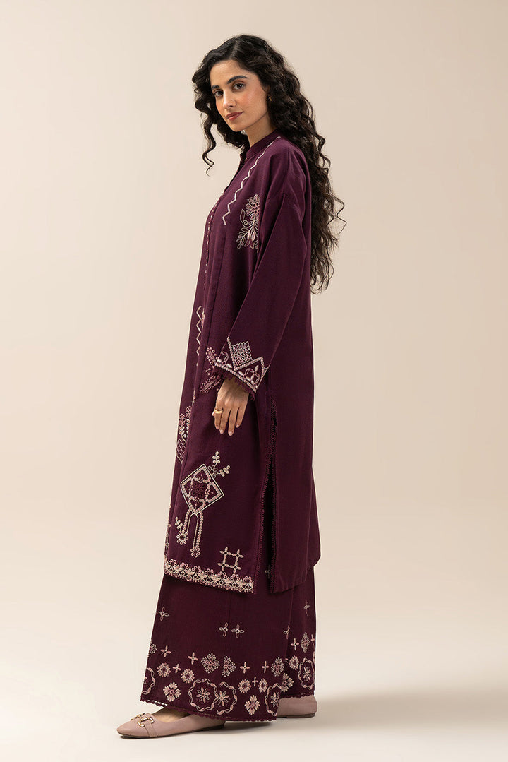 2 PIECE EMBROIDERED SLUB KHADDAR SUIT-MULBERRY MAZE (UNSTITCHED)