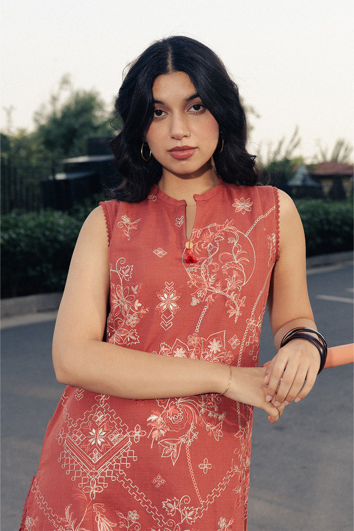2 PIECE EMBROIDERED SLUB KHADDAR SUIT-RUSTIC MUSK