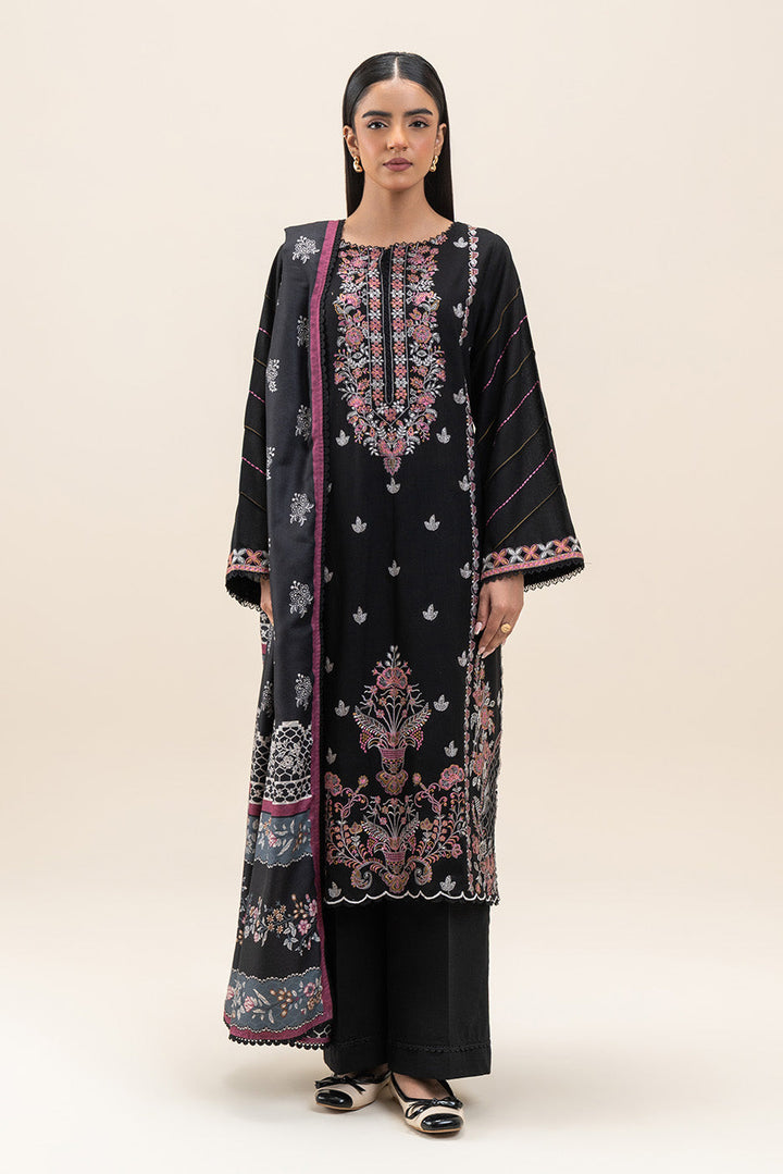 3 PIECE EMBROIDERED SLUB KHADDAR SUIT-OBSIDIAN GEM