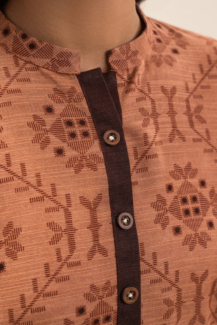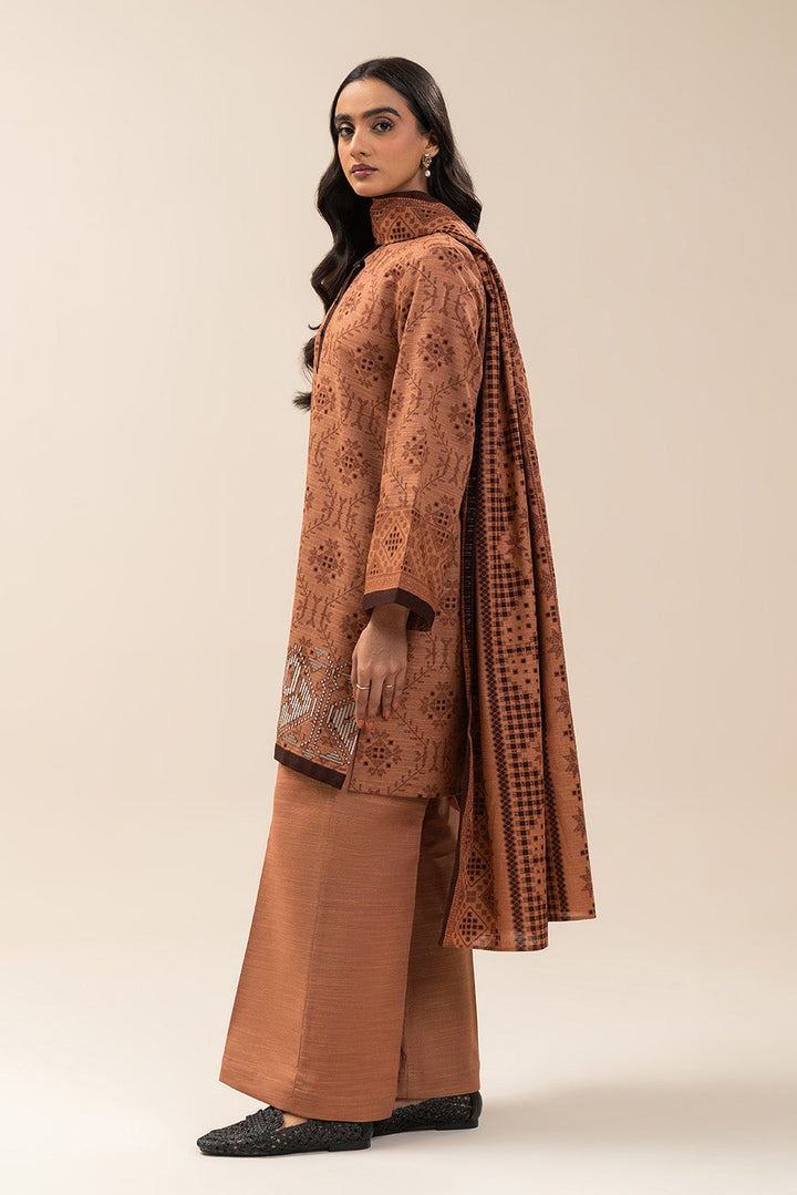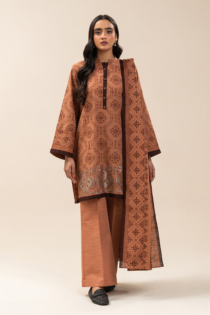 3 PIECE EMBROIDERED SLUB KHADDAR SUIT-BRONZE DUST (UNSTITCHED)