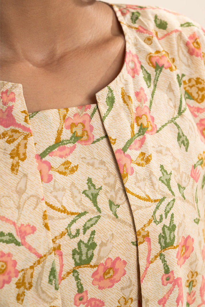 2 PIECE PRINTED CAMBRIC SUIT-BISQUE BLOOM (UNSTITCHED)