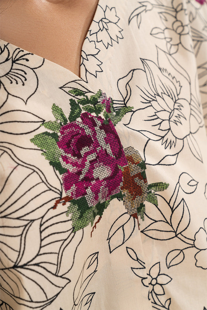 2 PIECE PRINTED CAMBRIC SUIT-BLOOMY WEFT (UNSTITCHED)