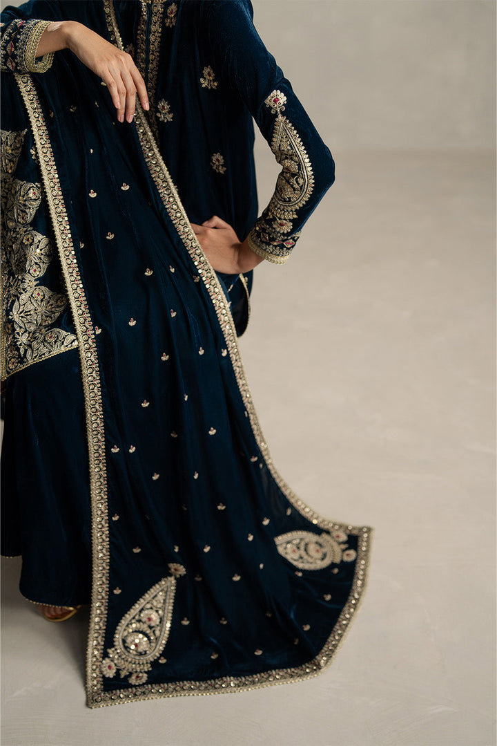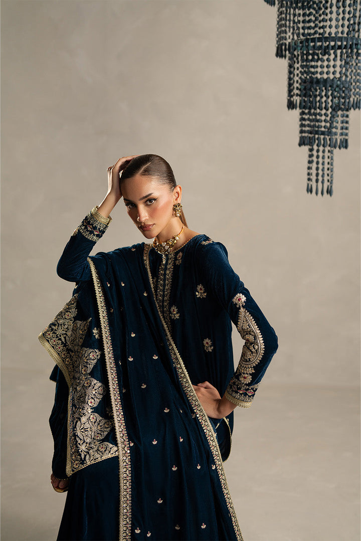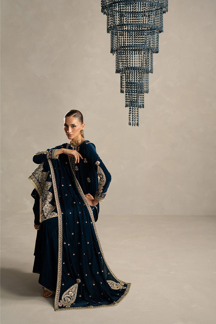 3 PIECE EMBROIDERED VELVET SUIT-AZURE SPELL (UNSTITCHED)