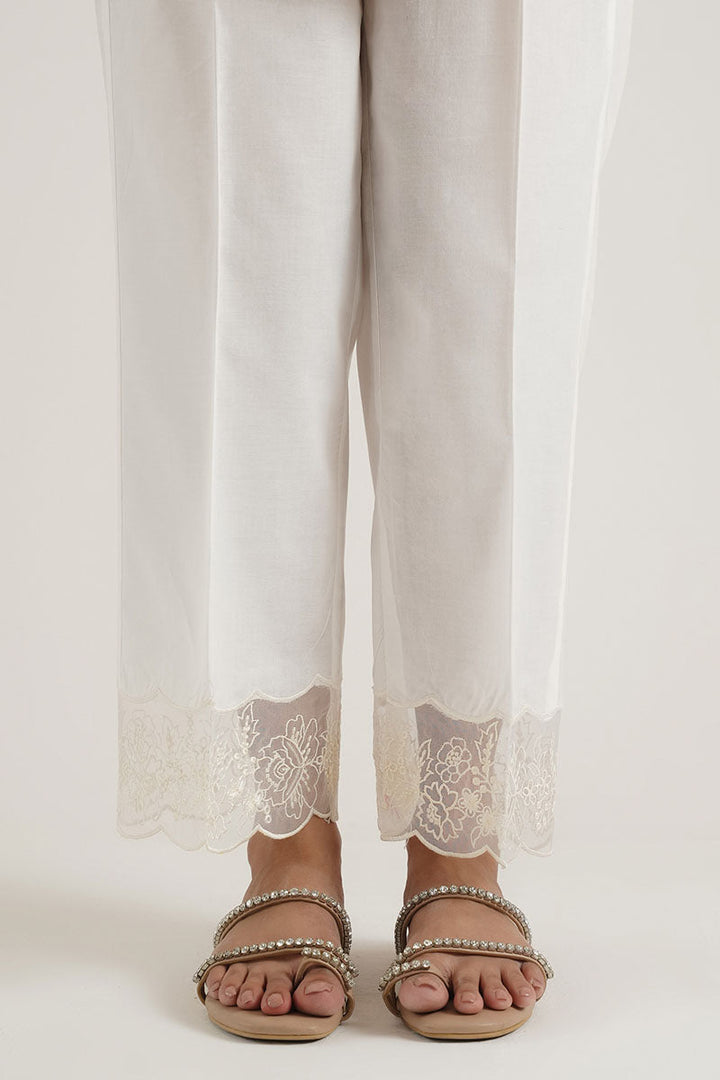 STRAIGHT PANTS,CAMBRIC,ORGANZA PATCH+CUTWORK+MULTIHEAD EMBROIDERY