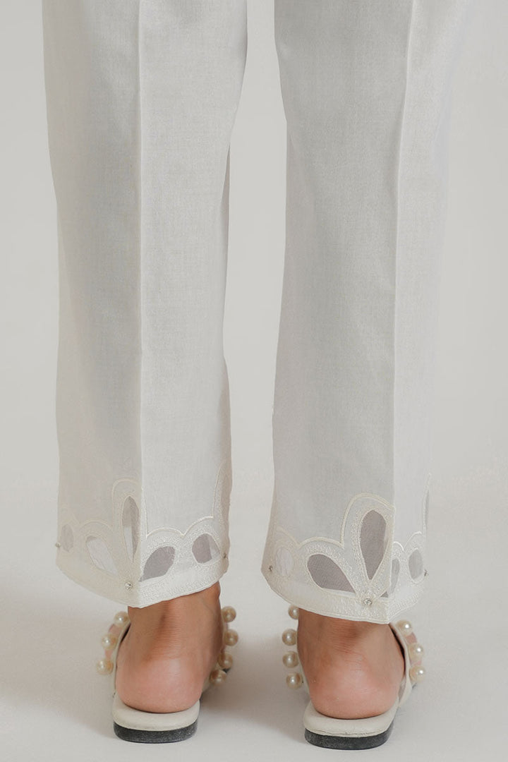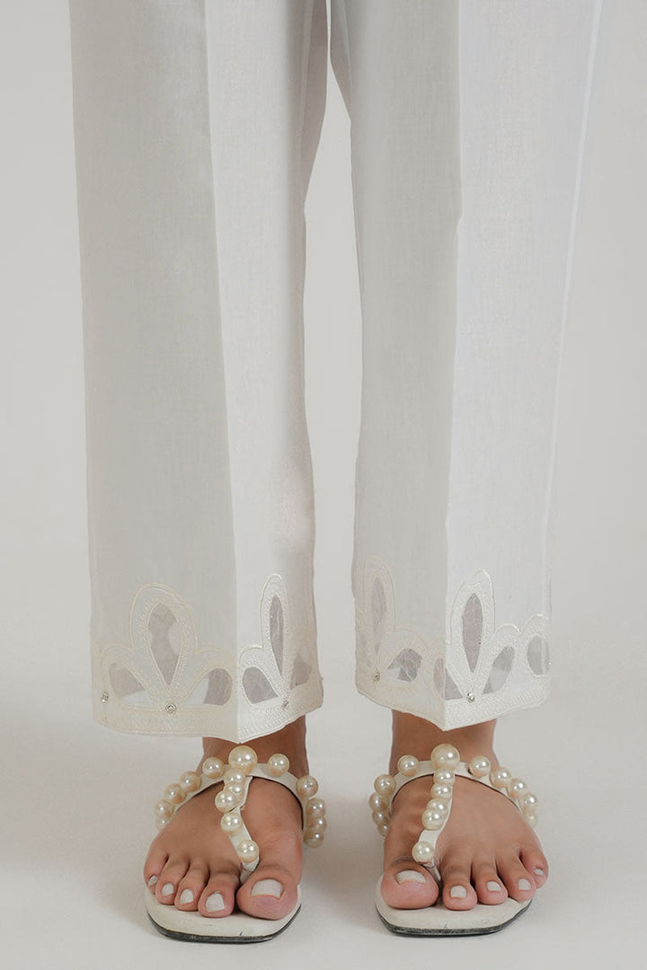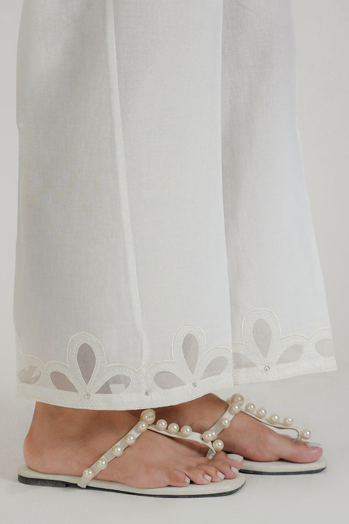 STRAIGHT PANTS,CAMBRIC,ORGANZA CUTWORK+EMBROIDERY