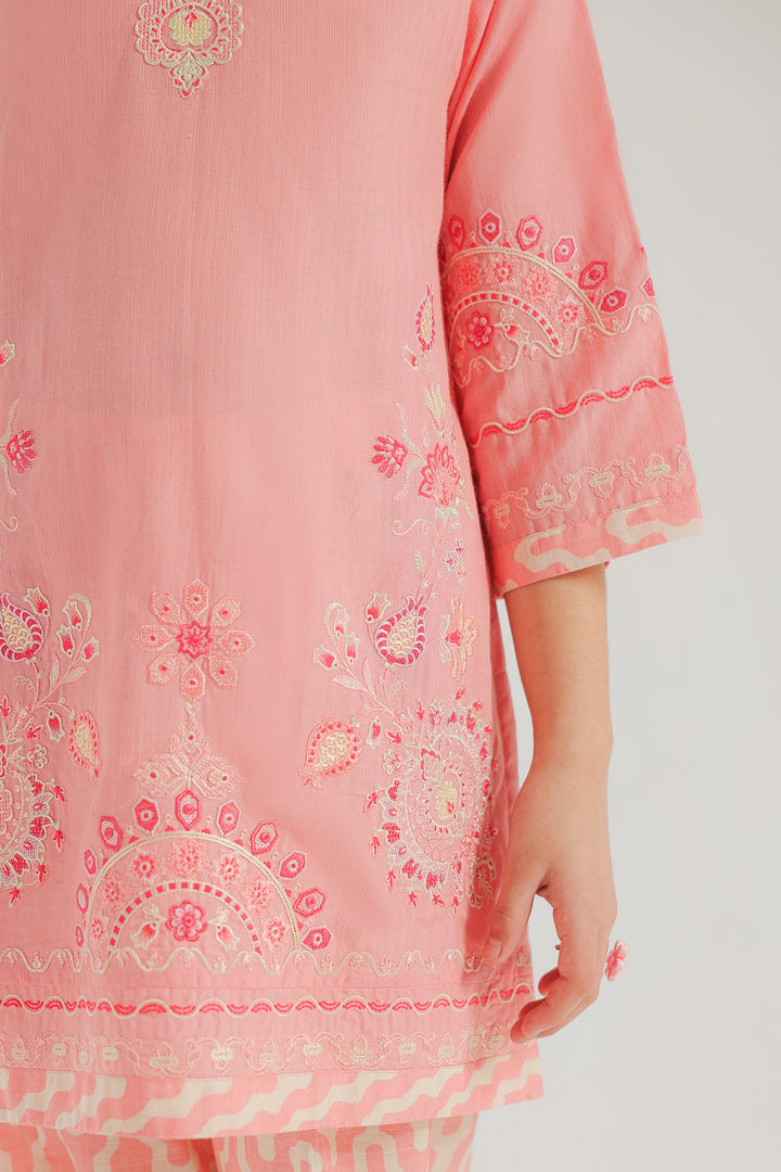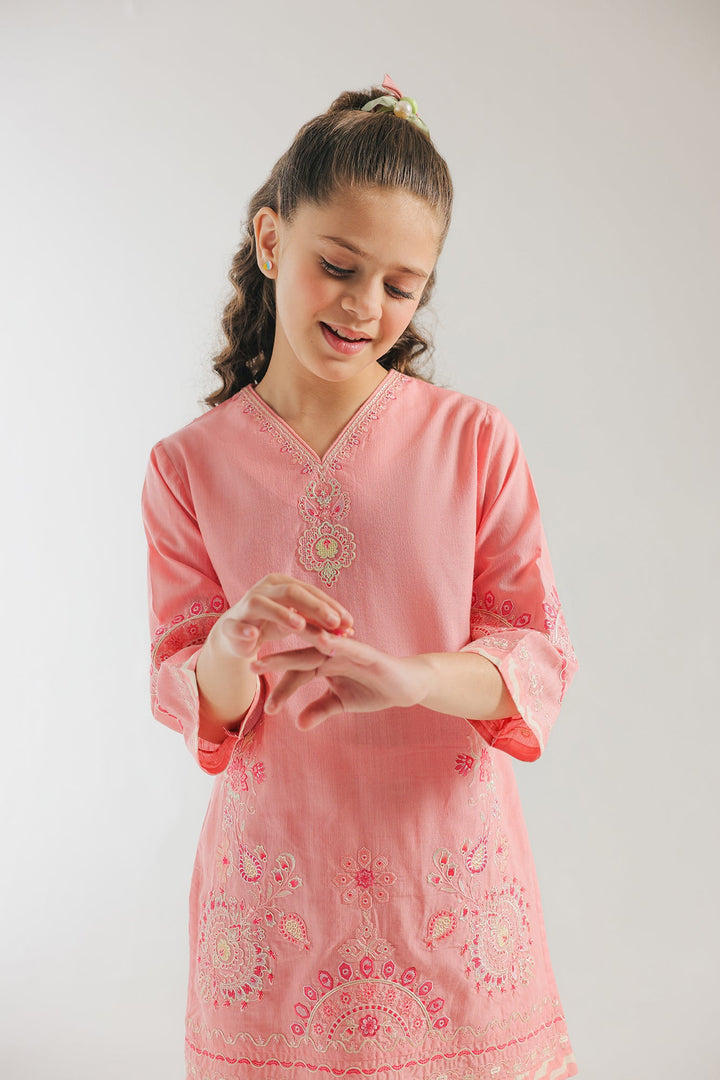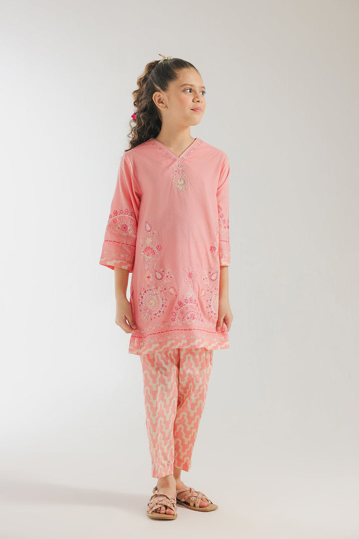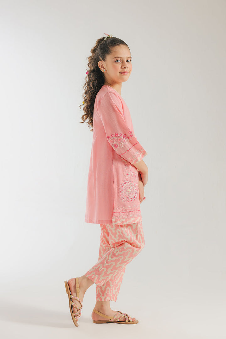 A contemporary composition crafted in a trendy silhouette shirt beautifully adorned with captivating floral designs embroidered in vibrant colors illustrating traditionally rich elements. Paired with a trendy printed trouser, this style statement outfit is a perfect option for your girls to embrace at everyday occasions.