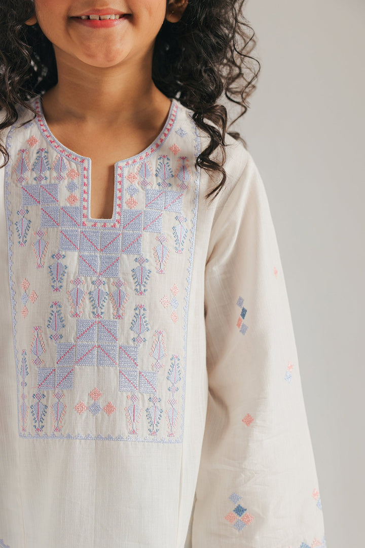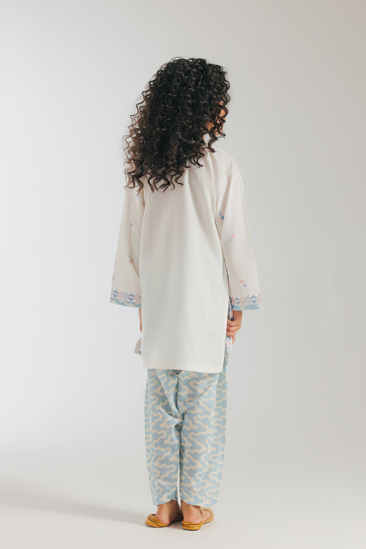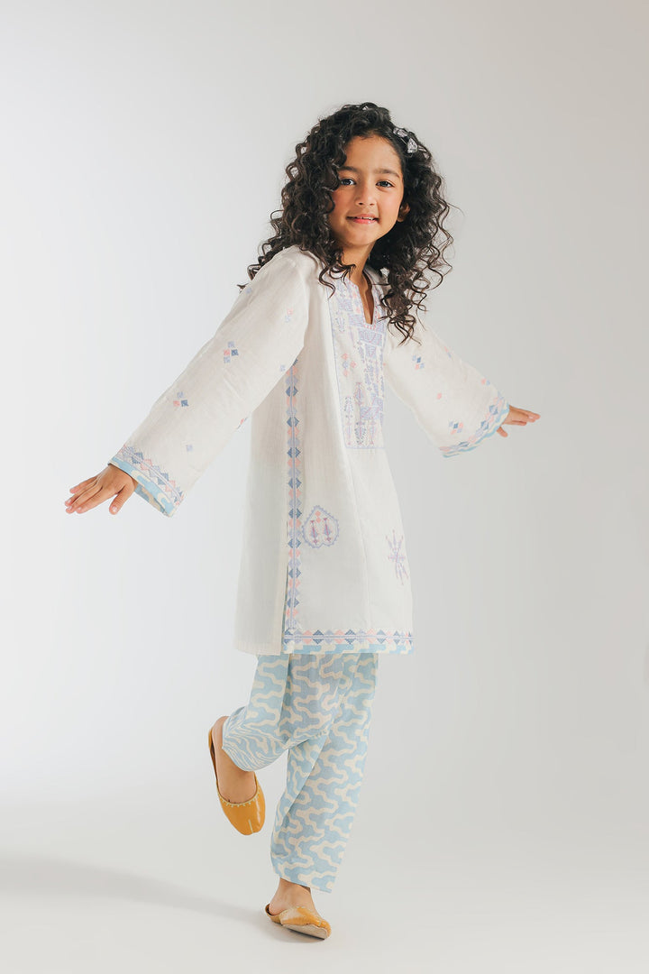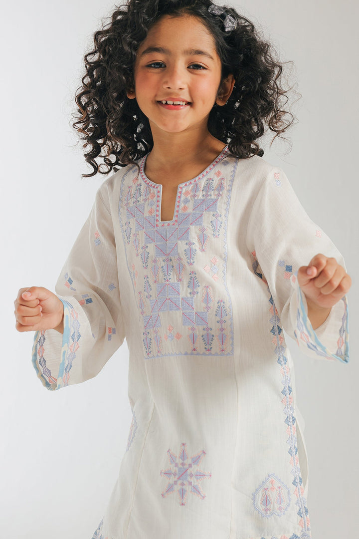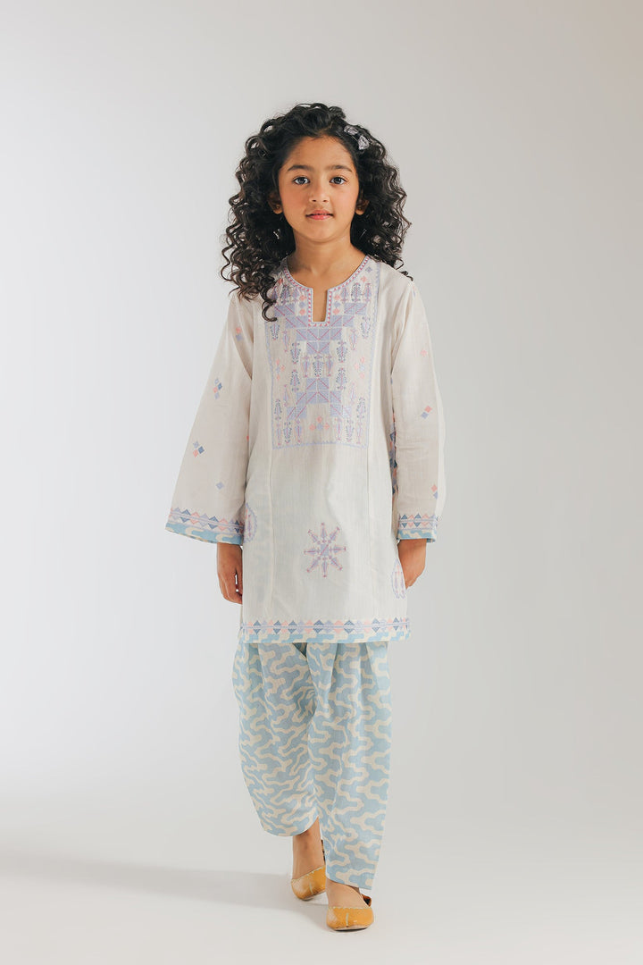 A contemporary composition crafted in a trendy silhouette shirt beautifully adorned with captivating floral designs embroidered in refreshing colors illustrating traditionally rich elements. Paired with a trendy printed shalwar, this style statement outfit is a perfect option for your girls to embrace at everyday occasions.