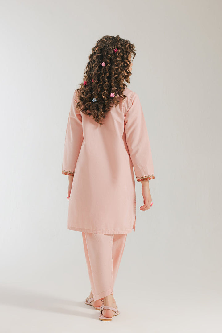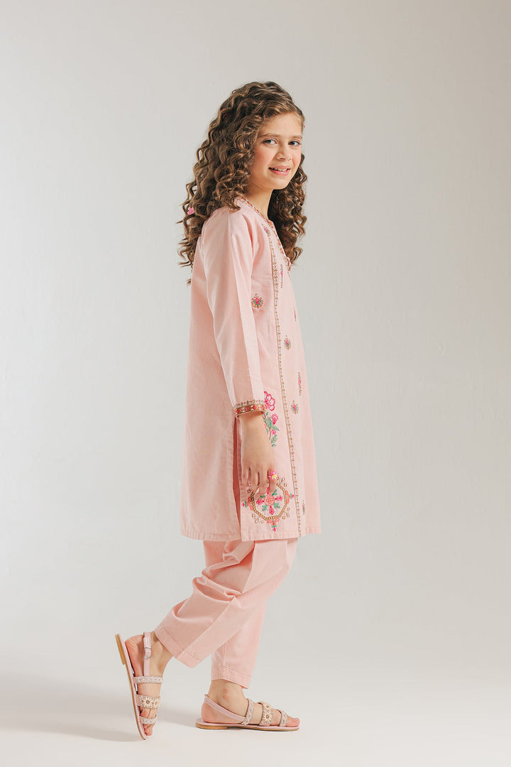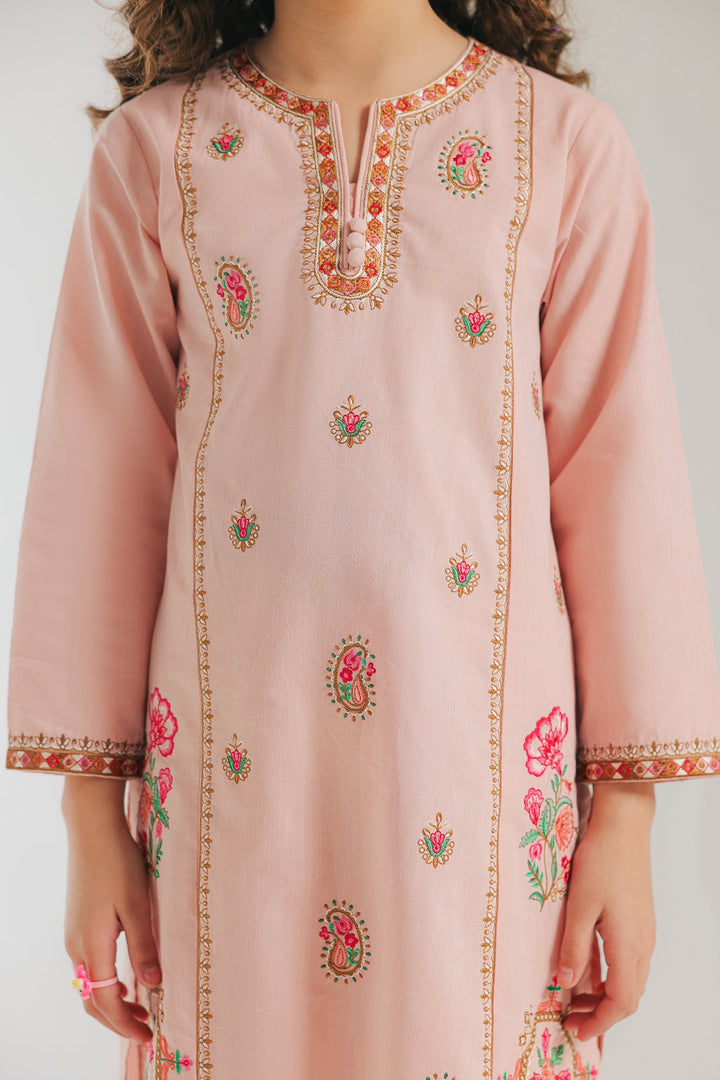 A contemporary composition crafted in a trendy silhouette shirt beautifully adorned with captivating floral designs embroidered in vibrant colors illustrating traditionally rich elements. Paired with a classy solid shalwar this style statement outfit is a perfect option for your girls to embrace at everyday occasions.