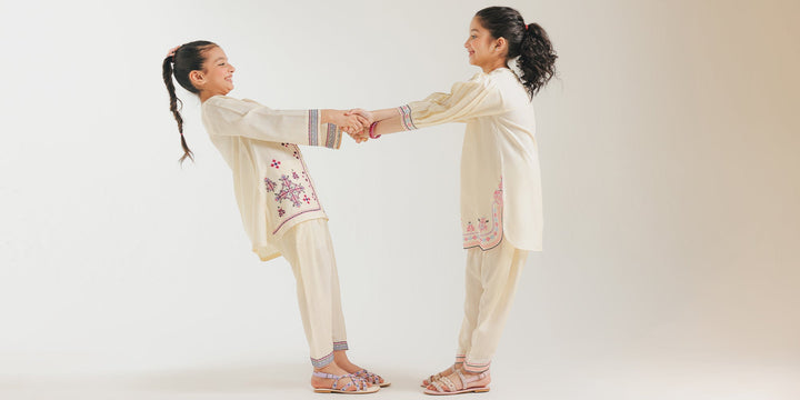 A contemporary composition crafted in a trendy silhouette shirt beautifully adorned with captivating floral designs embroidered in vibrant colors illustrating traditionally rich elements. Paired with a classy embroidered shalwar this style statement outfit is a perfect option for your girls to embrace at fun occasions.