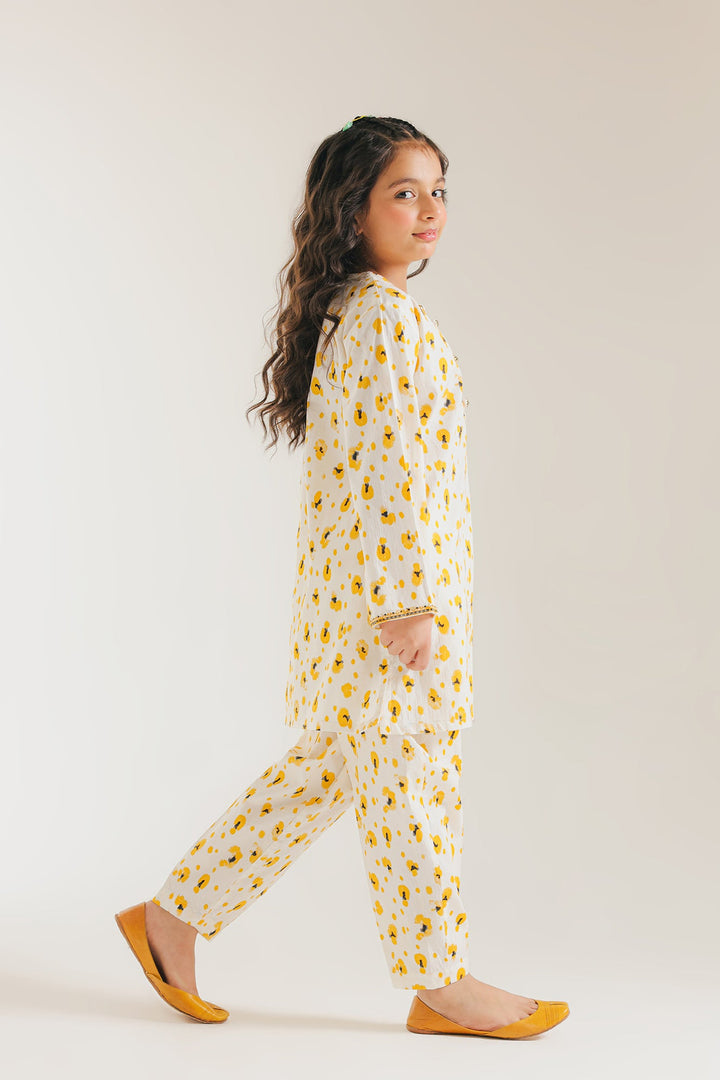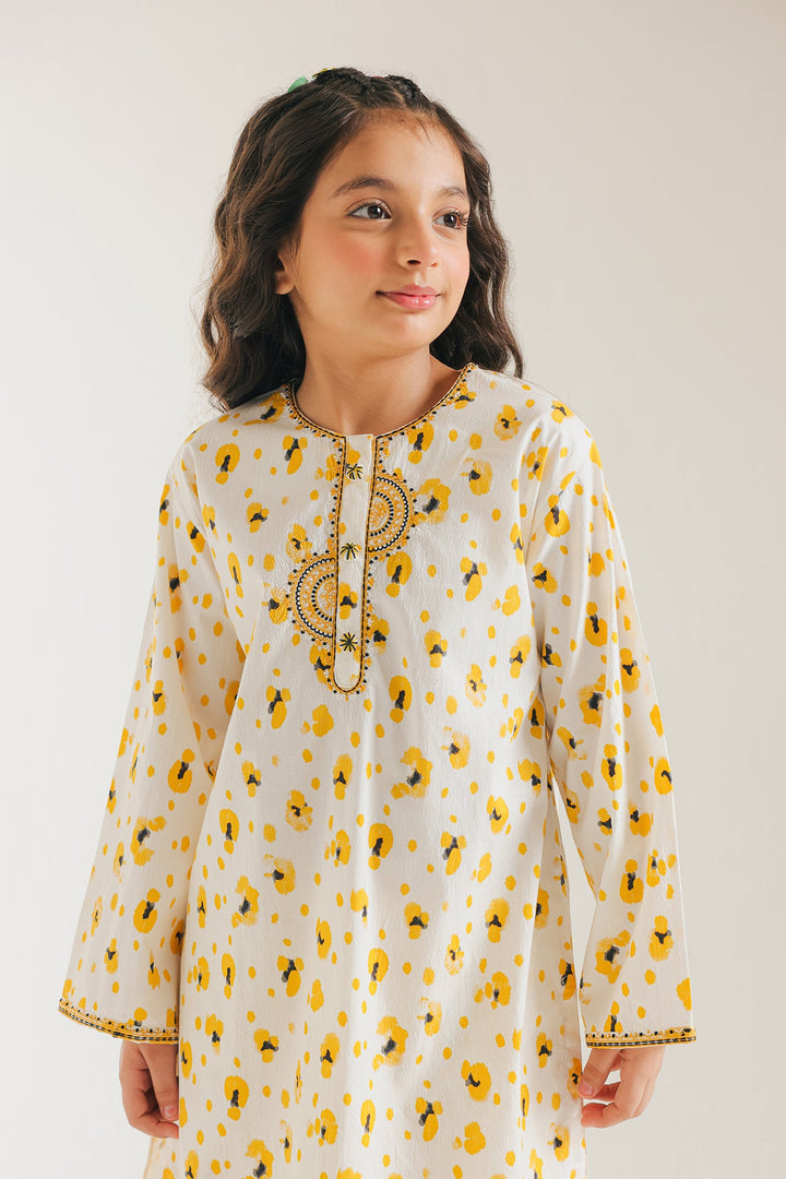 A contemporary composition crafted in a trendy silhouette shirt beautifully adorned with artistic prints in vibrant hues and enriched with captivating floral designs embroidered with intricate details. Paired with a classy shalwar, this style statement outfit is a perfect option for your girls to embrace at fun occasions.