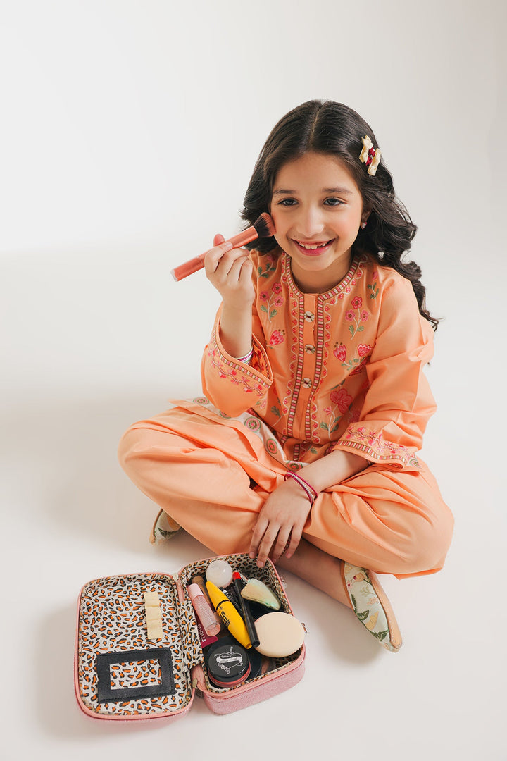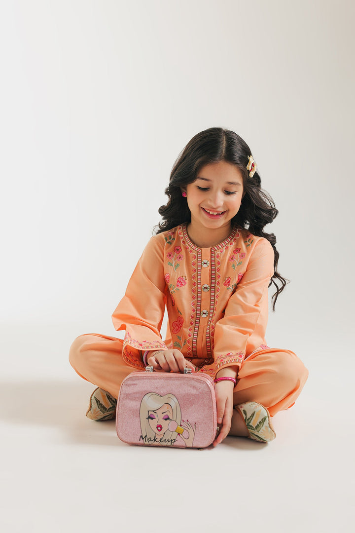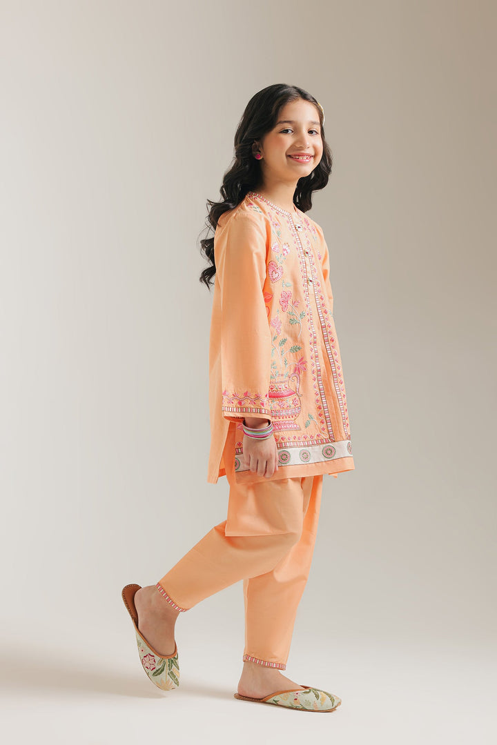 A sophisticated ensemble featuring a modern silhouette shirt embellished with vivid floral embroidery showcasing traditional design elements. Complemented by an elegantly embroidered shalwar, this refined outfit presents an ideal choice for young ladies attending festive gatherings, perfectly balancing contemporary style with cultural artistry.