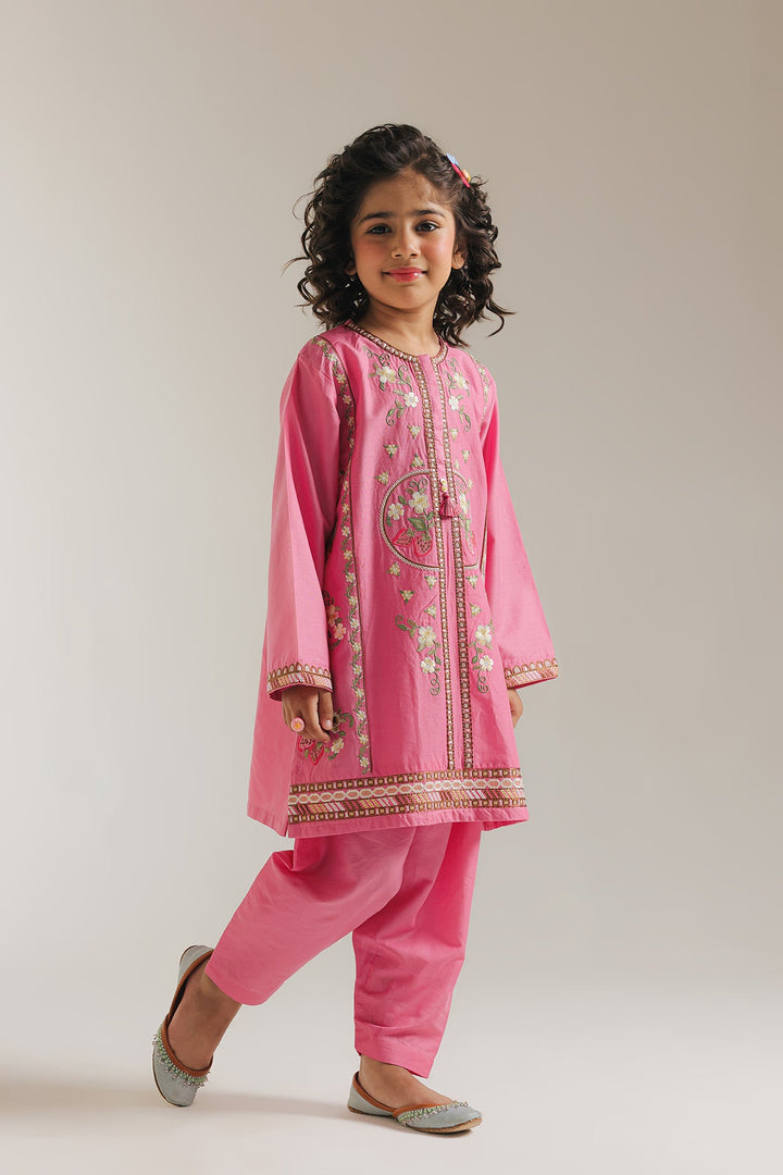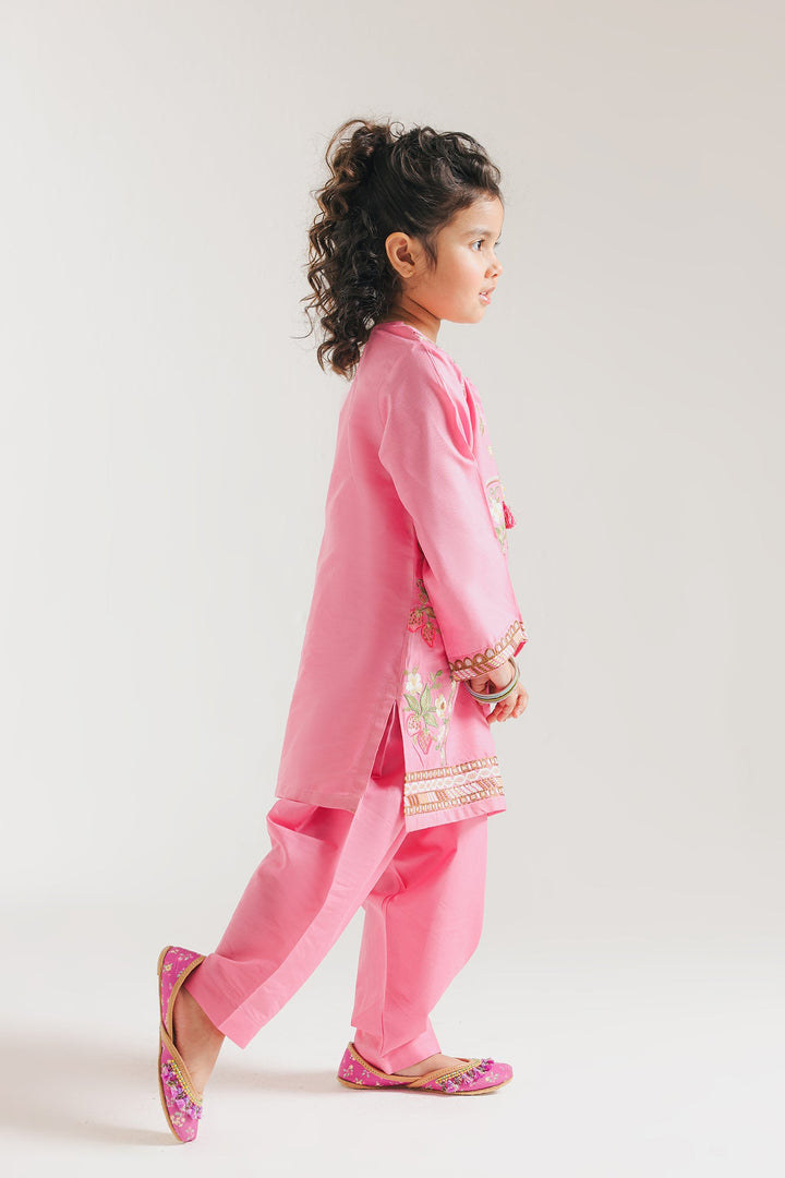 Expertly crafted in a trendy silhouette, this embroidered suit effortlessly combines contemporary design with traditional elements. The vibrant floral embroidery adds a captivating touch to blush blush pink outfit, while the solid shalwar adds a touch of class. Perfect for fun occasions, this outfit is sure to make a style statement.