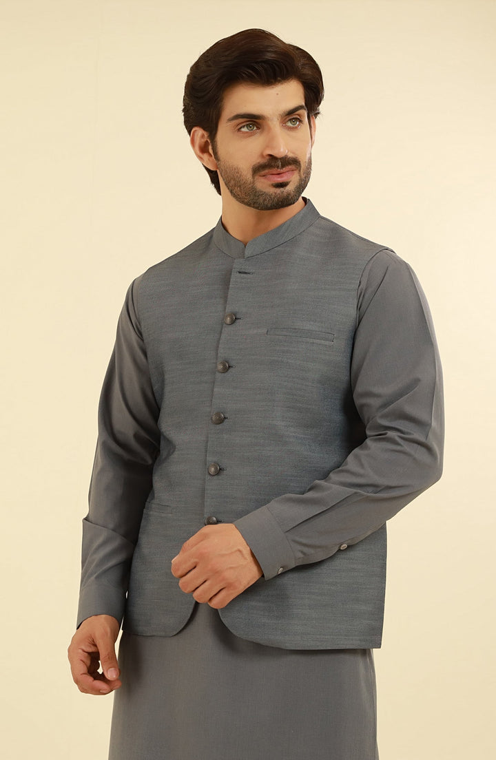 CHARCOAL KAMEEZ SHALWAR WITH WAIST COAT