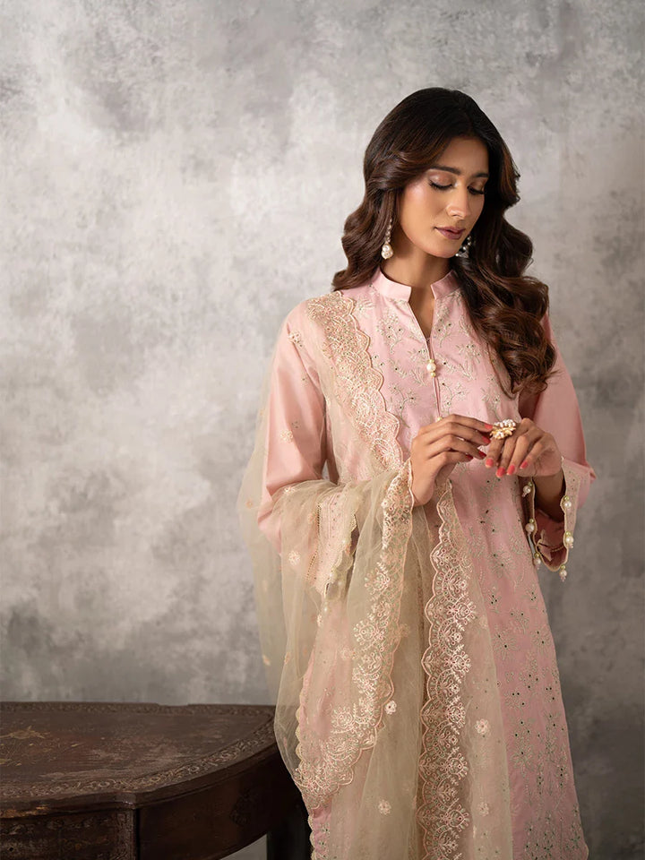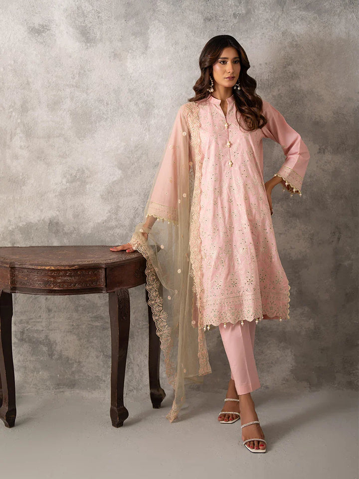 3PC UNSTITCHED CHIKANKARI EMBROIDERED LAWN SUIT