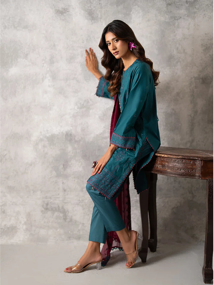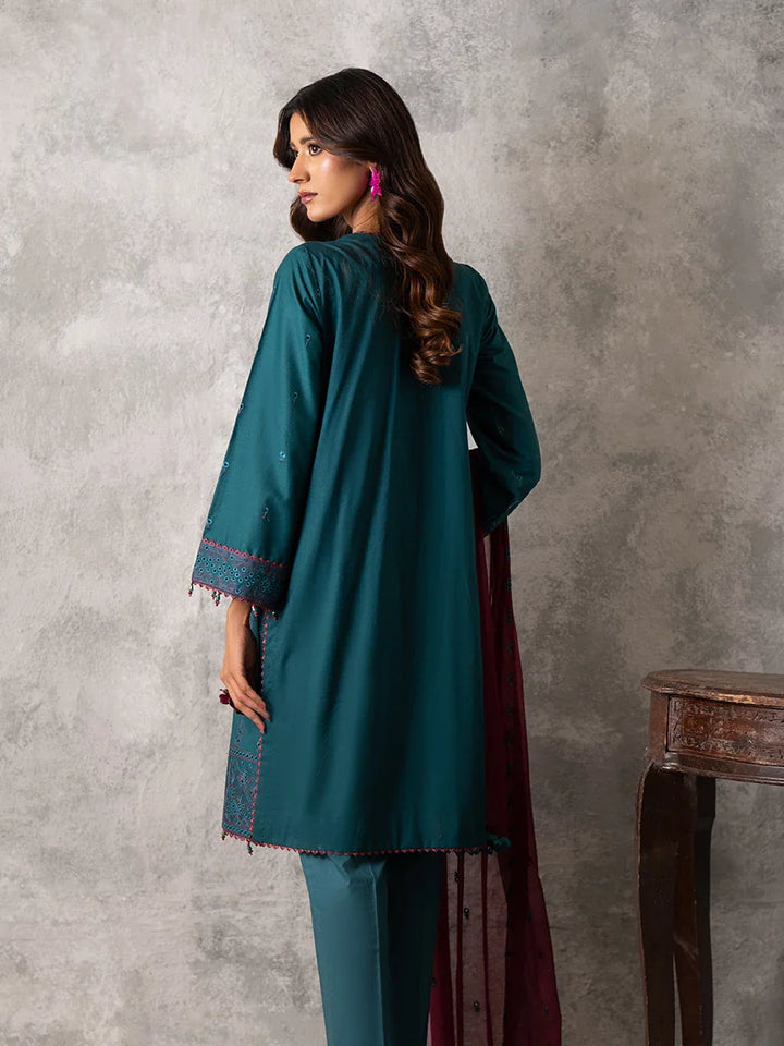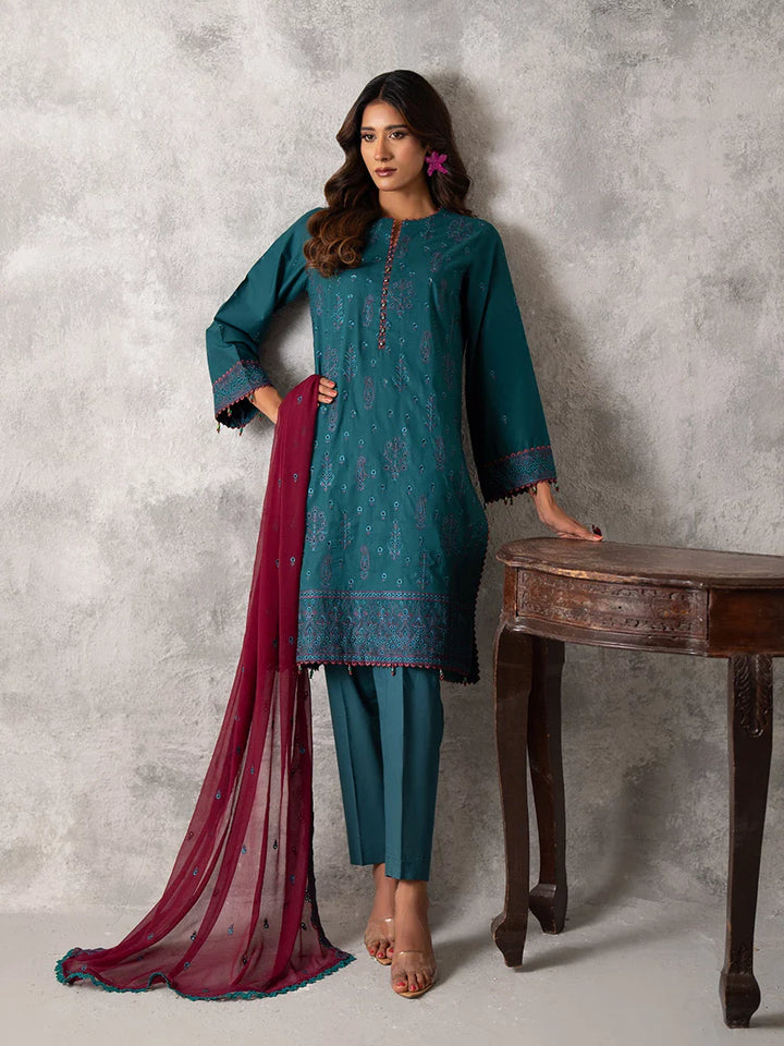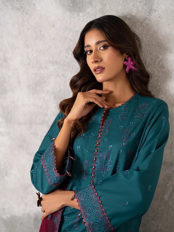 3PC UNSTITCHED CHIKANKARI EMBROIDERED LAWN SUIT