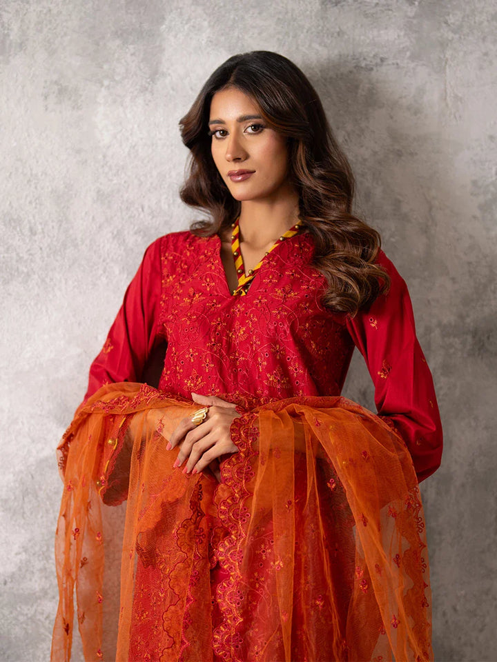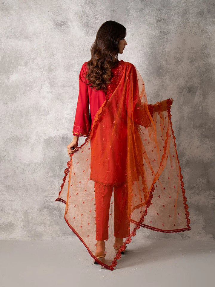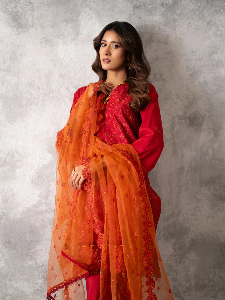 3PC UNSTITCHED CHIKANKARI EMBROIDERED LAWN SUIT