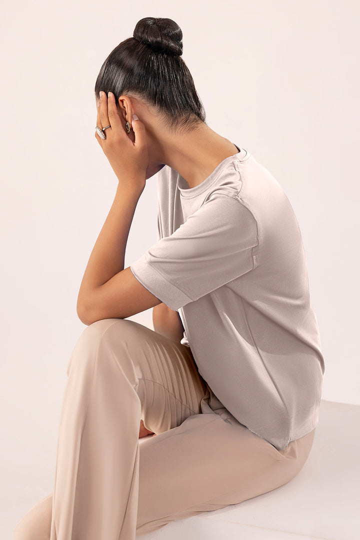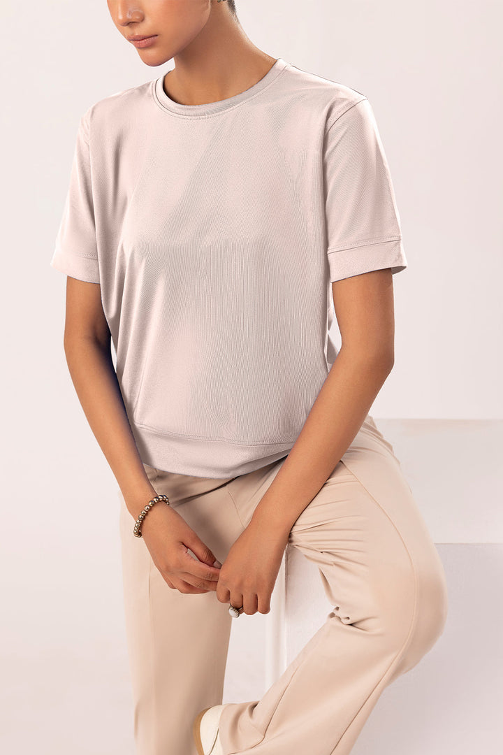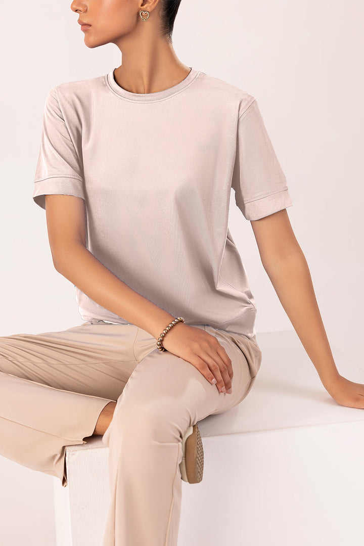 Redefine Everyday Elegance With SAYA’s Classic Fit Tee In Beige, Crafted From Premium Scuba Fabric That Offers A Sleek Structure, Gentle Stretch, And Exceptional Comfort. The Smooth, Wrinkle-Resistant Texture Enhances Its Modern Appeal, While The Classic Silhouette Ensures A Flattering, Streamlined Fit. Designed For Both Style And Function, This Tee Effortlessly Balances Comfort With Contemporary Sophistication. The Soft Beige Shade Adds A Touch Of Subtle Refinement, Making It Perfect For Work, Travel, Or Casual Outings. A Versatile Wardrobe Essential That Seamlessly Blends Modern Design With Lasting Ease.