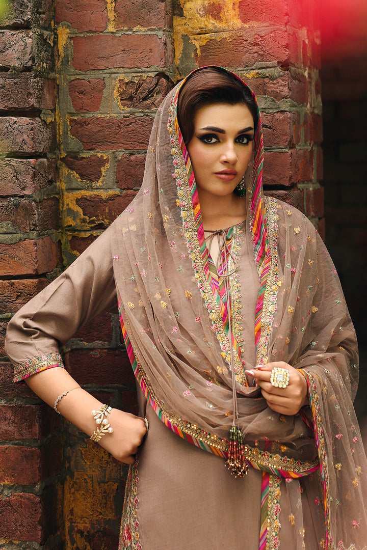 Poly Net Dupatta with embroidered dupatta pallu lace and dupatta spray.