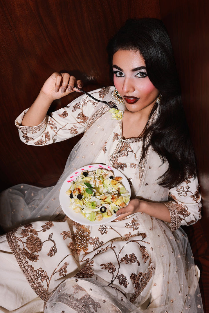 Raw Silk Shirt with embroidered neckline, embroidered front spray, embroidered sleeves spray, embroidered sleeves lace, embroidered front back armholes, embroidered back neck and embroidered front back chok lace.