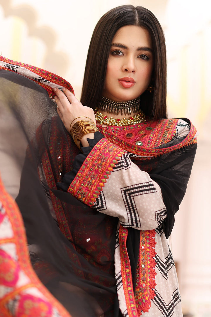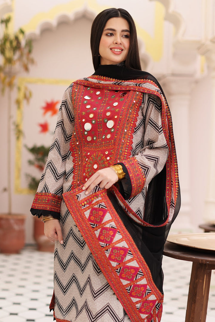 3-PC Embroidered Cotton Shirt with Chiffon Dupatta and Trouser CNP-4-09