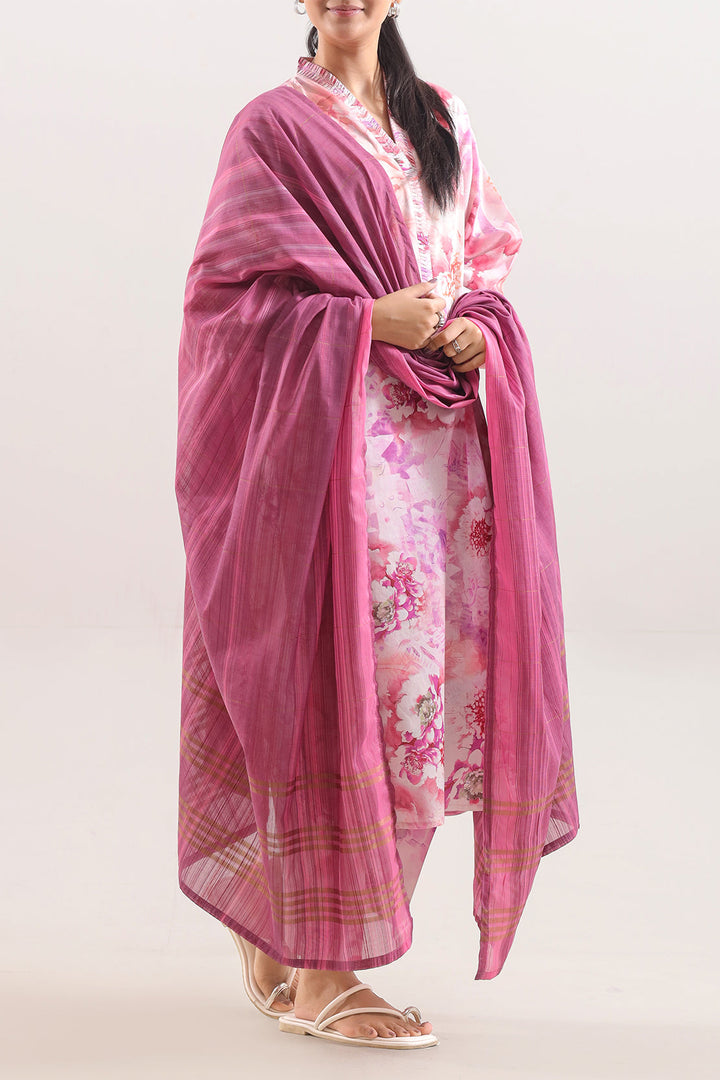 Vibrant And Elegant, This SAYA Cotton Jacquard Dupatta In Multi Color Adds A Distinctive Touch To Any Ensemble. The Intricate Jacquard Weave Creates A Subtle Self-Pattern That Enhances The Fabric With Depth And Texture. Crafted From Premium Cotton, It Balances Softness With Structure, Allowing A Graceful Drape That Holds Its Form. Whether Draped Over Festive Outfits Or Paired With Everyday Wear, This Dupatta Elevates Your Look With Colorful Sophistication And Polished Charm.