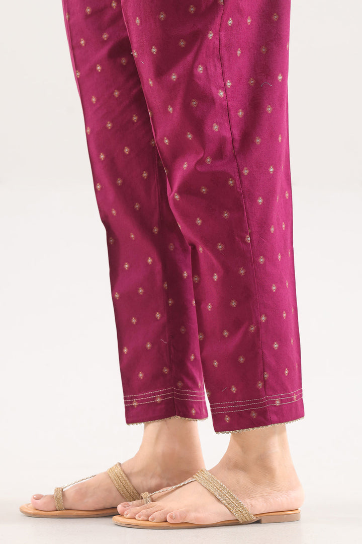 Elevate Your Ensemble With The SAYA Cotton Jacquard Pants, Expertly Woven From Breathable Cotton Jacquard That Marries Comfort With Subtle Texture. The Intricate Jacquard Weave Adds A Refined Dimension To The Fabric, Bringing Visual Interest Without Loud Prints. Tailored In A Straight-Leg Silhouette With A Flexible Waistband For Easy Wear, These Pants Provide Effortless Movement And Graceful Drape. Available In An Elegant Off-White Shade, They Pair Beautifully With Bold Kurtas Or Embellished Tops For Daytime Gatherings Or Semi-Formal Occasions. A Versatile Wardrobe Staple That Blends Fabric Excellence, Design Sensibility, And Practical Ease.