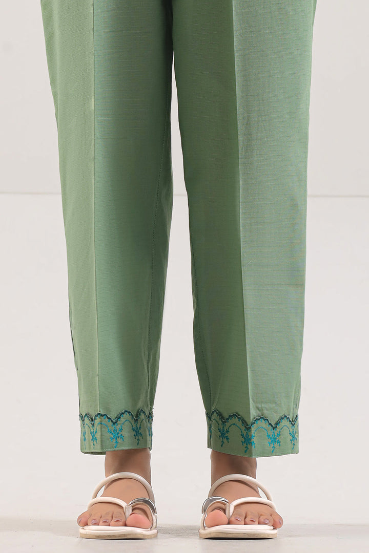 Cotton Jacquard Pants By SAYA Tailored From Premium Jacquard Cotton Offering Breathable Comfort And Refined Texture. The Green Tone Brings A Fresh, Versatile Appeal, Making It Suitable For Both Daywear And Semi-Formal Styling. Featuring A Neat Cut, Smooth Finish, And Durable Weave, These Pants Pair Effortlessly With Printed Or Solid Kurtas, Adding Subtle Sophistication To Everyday Fashion.
