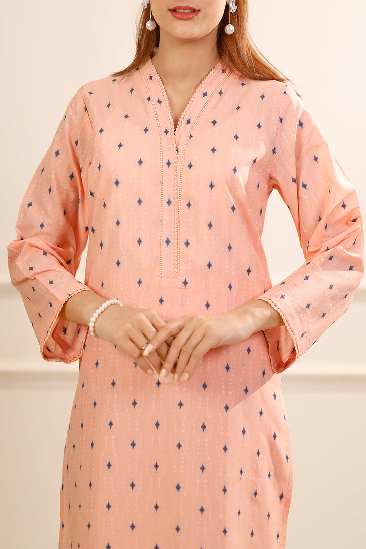 Elevate your style with the Cotton Jacquard Stitched 2-Piece Shirt & Trouser Set from Saya.pk. Made from premium cotton jacquard fabric, this set offers a perfect blend of comfort, durability, and elegance. The shirt features a classic jacquard weave design, while the trousers are tailored for a sleek, polished look. Ready-to-wear and designed for convenience, this set is ideal for formal events, office wear, or festive occasions. Affordable and stylish, it’s a timeless addition to your wardrobe.