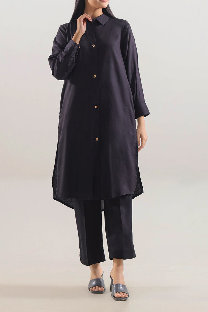 Cotton Jacquard Stitched 2-Piece By SAYA Radiates Elegant Depth In A Black Hue. Woven From Premium Jacquard Cotton, It Offers Texture With Breathability. The Shirt Features Clean Stitching, A Refined Collar, And A Tailored Silhouette That Speaks Of Subtle Luxury. Paired With A Matching Trouser, This Ready-To-Wear Ensemble Is Perfect For Semi-Formal Outings, Office Evenings, Or Polished Daywear.