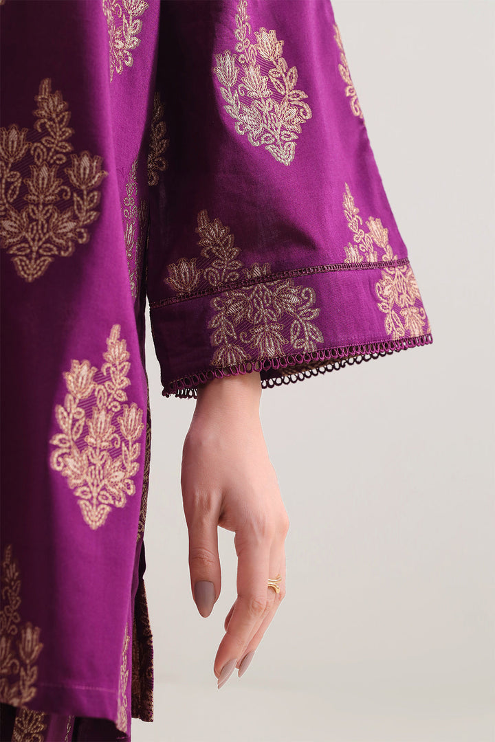 Elevate Your Everyday Style With The SAYA Cotton Jacquard Stitched 2-Piece Shirt & Trouser Set Crafted From Rich Cotton Jacquard Fabric With A Distinct Weave That Offers Depth And Comfort, This Ready-To-Wear Ensemble Includes A Fully Stitched Shirt And Coordinated Trouser In A Sophisticated Plum Hue. Ideal For Smart Casual Days, Office Wear Or Semi-Formal Events, It Balances Fabric Quality, Sleek Design And Effortless Utility With Undeniable Style.