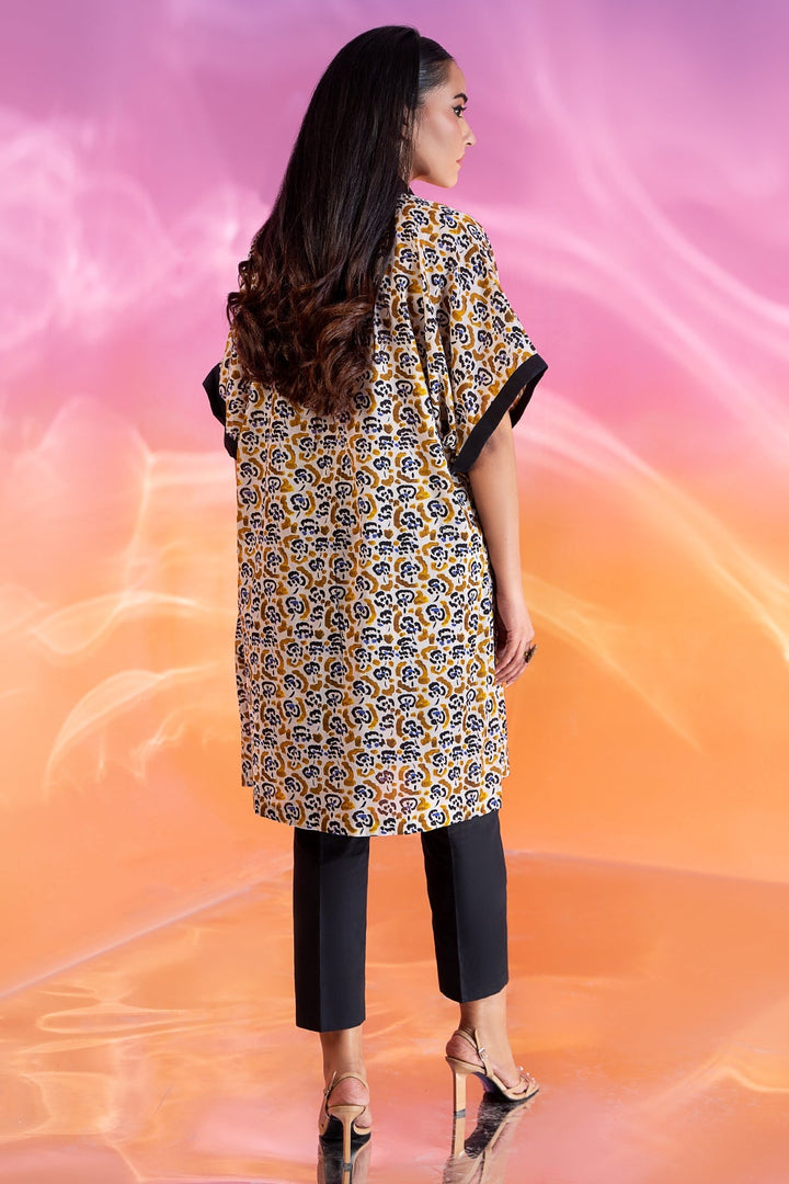 Shirt: Cotton Printed Shirt with black fashion. Finished with Stitching detail. |