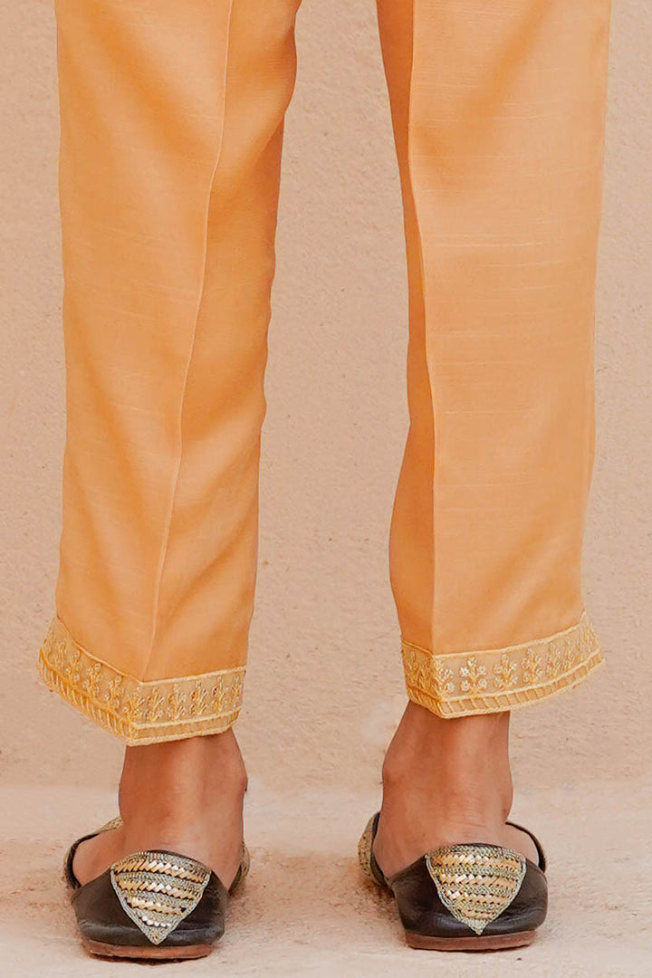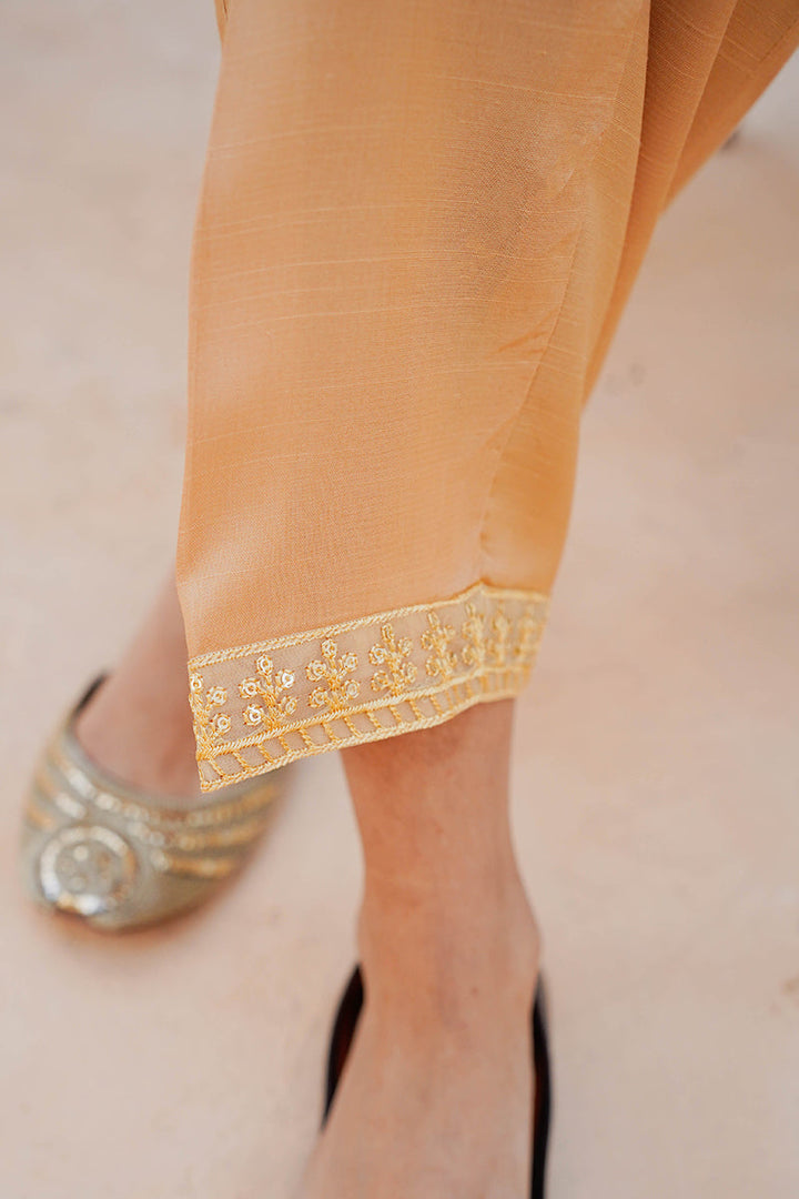 SEQUIN EMBROIDERED RAW SILK STRAIGHT FITTED PANTS