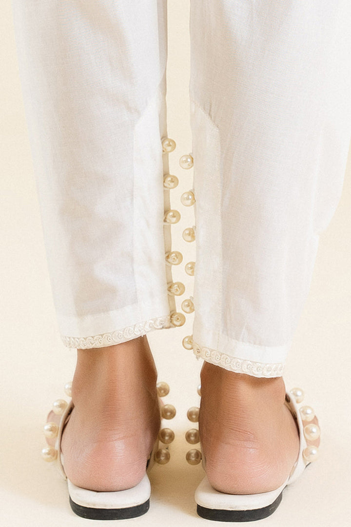 CAMBRIC TAPERED SHALWAR EMBROIDERED BORDER WITH SIDE LOOP BUTTON