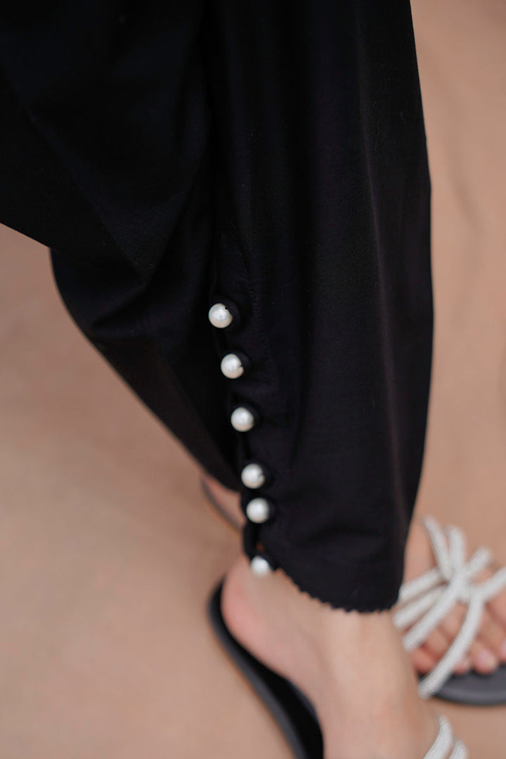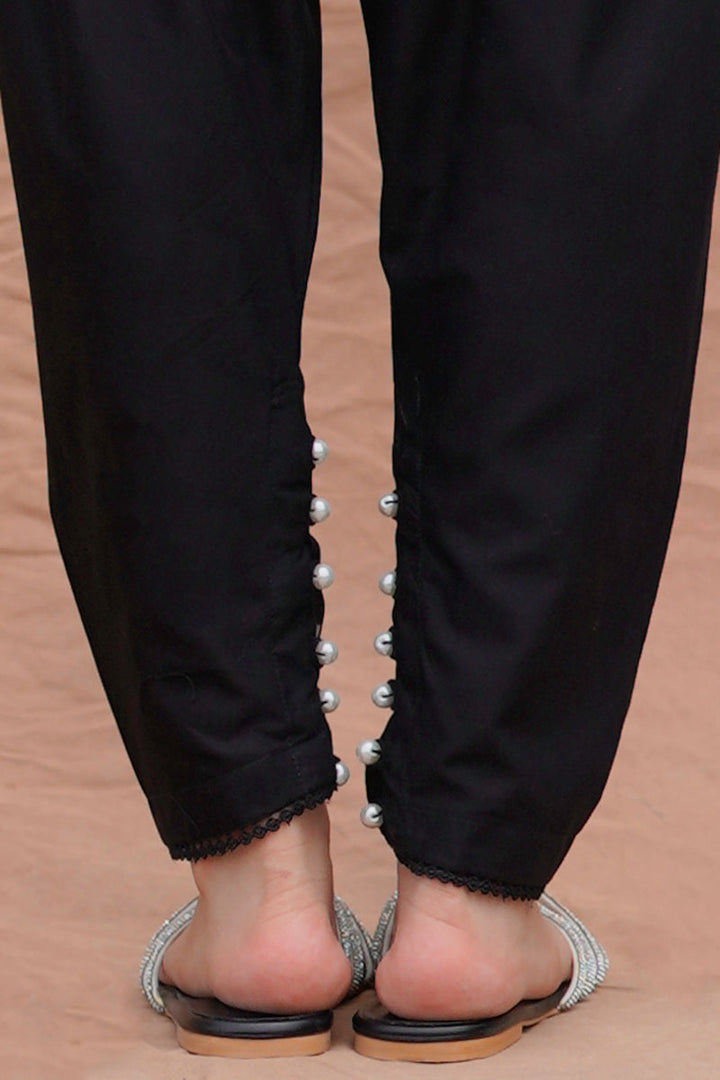 CAMBRIC TAPERED SHALWAR WITH LACE ON HEM AND LOOP BUTTON OPENING