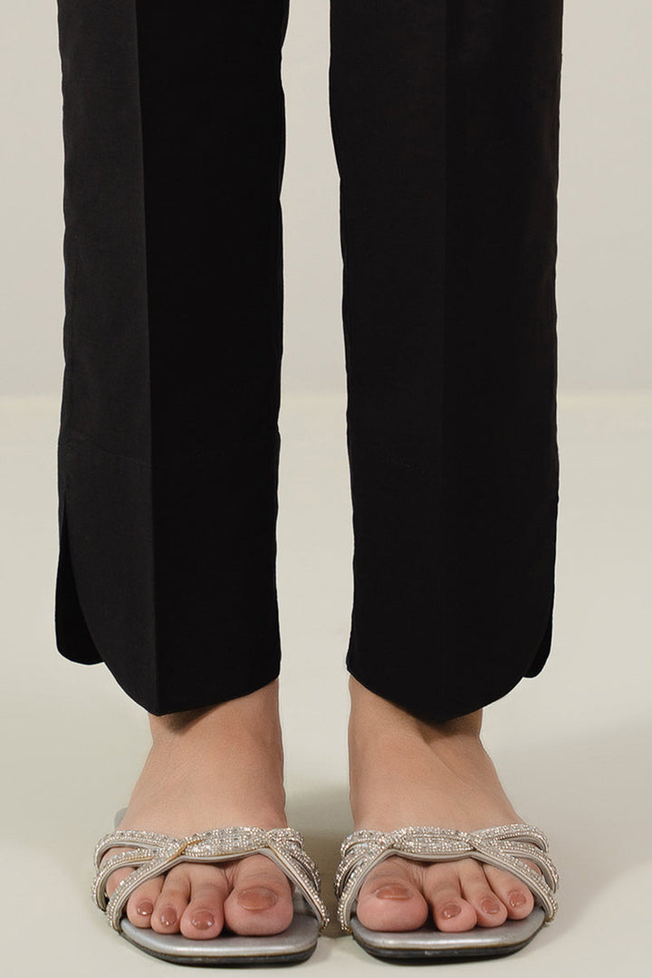 CAMBRIC SIDE SLIT DETAIL STRAIGHT FITTED PANTS